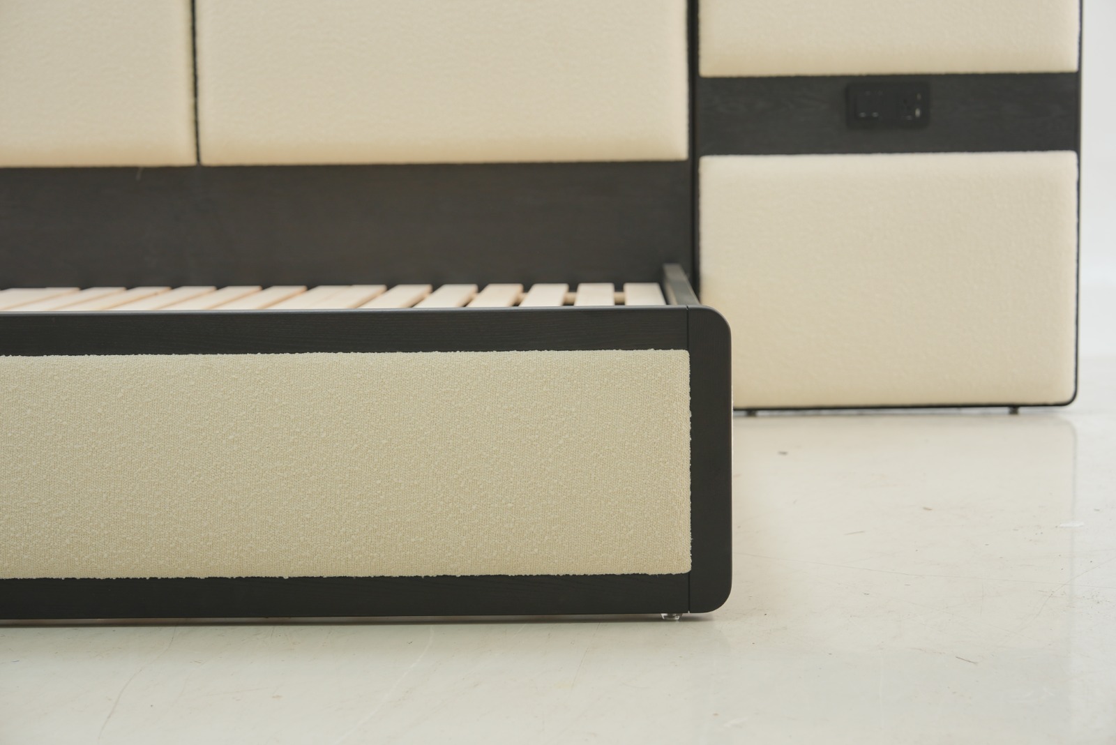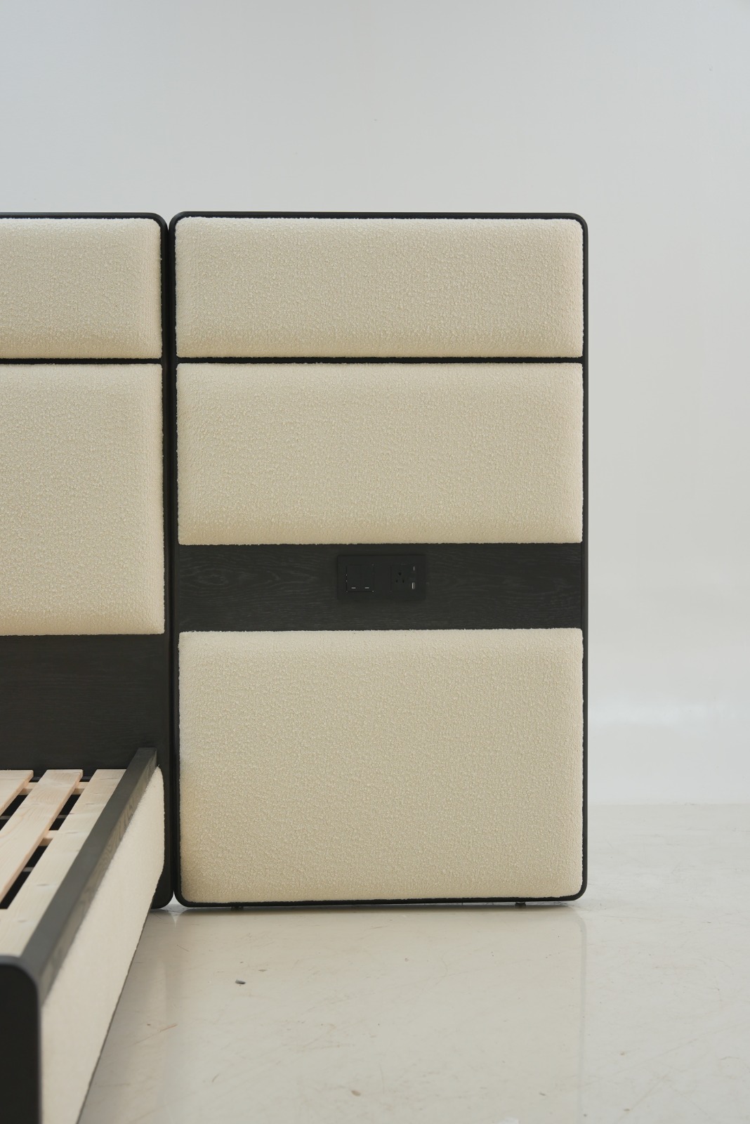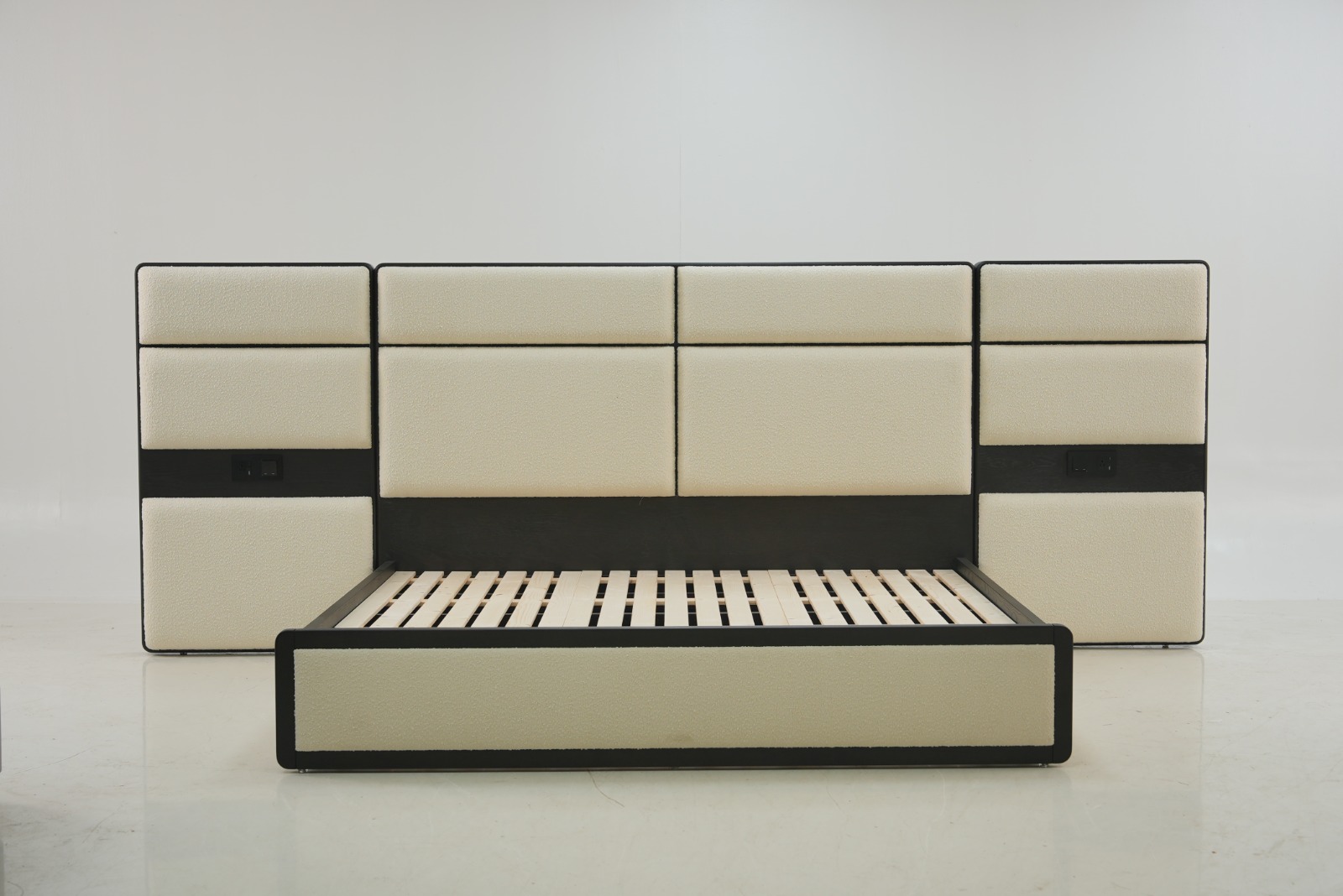 Design concept:Jinghua is the beautiful name of the capital,where cultural relics and talents gather.The bed screen design of this bed has independent individual soft bags and solid wood cut-in lines.Just likethe name “Jinghua”it is individual,integrated,and gathered,with a moderate degree of rigidity and flexibility,and fusion and innovation.Elegant shape, simple and fashionable,high-end fabrics,full soft bags,solid wood cut-in,the whole bed screen has both layering and comfort.The socket design on both sides of the bed screen is more humane and detailed