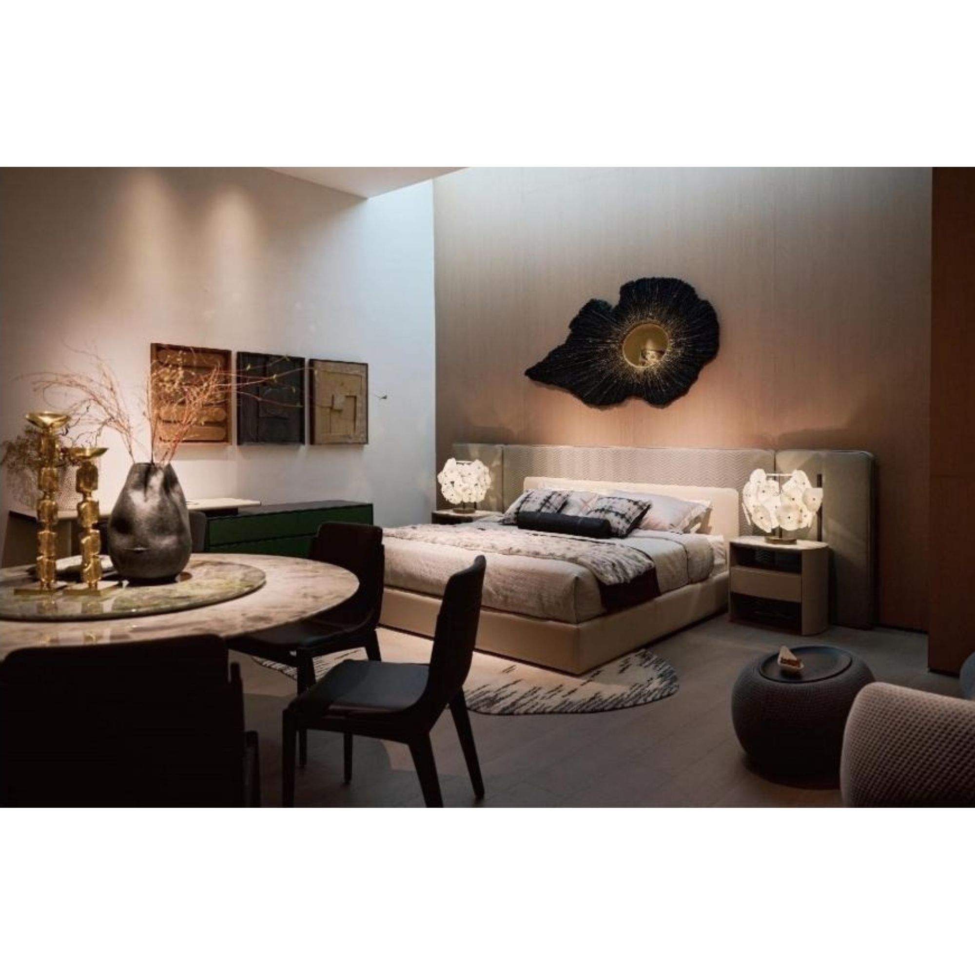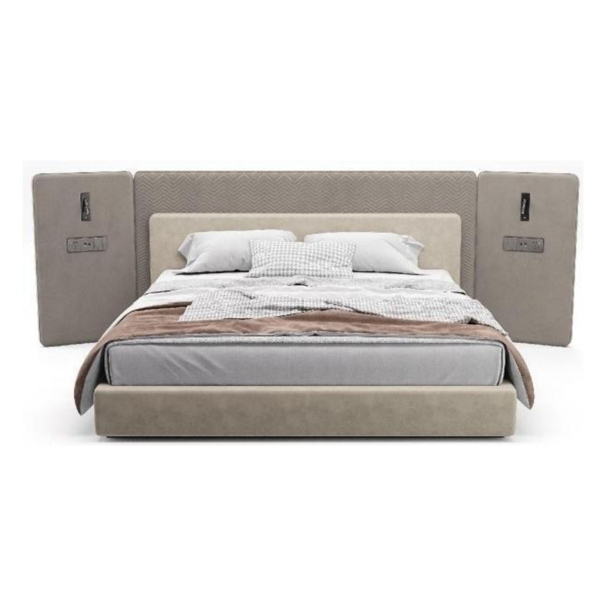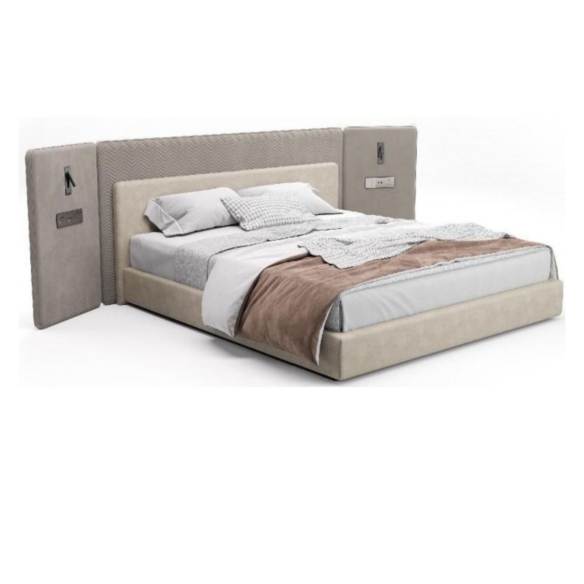 Design concept:The bed is the most luxurious atmosphere of our Meng Chen a bed,morethan three meters of the bed screen you can directly when the backgroundwal with,donot have to additionaly consider the decoration of the background wall the periphery of the bed screen patternusing the majestic atmospheric seawater river ciff pattern,is a traditional Chinese pattern,fullof the essence of the art of the ancients,after the designer’s simplification,the regularity and simplicity contains the beauty of the order,there is a kind of the most unintentional luxury,but also more in line with the aesthetic of the modern people!Standard;wider design on both sides of the overal moreatmospheric,while the integration of the bedside wal lamp,taking into account thefunction of night and reading,so that you can enjoy a comfortable sleep at the same time,you can also feel the ingenuity of the designer Color:MZÉN’s natural-color bedroom furniture retains the colors and textures of nature,alowing people to feel the charm of nature in their home space.This design concept is in line with modern people’s pursuit of a natural,healthy,and environmentally friendly lifestyle