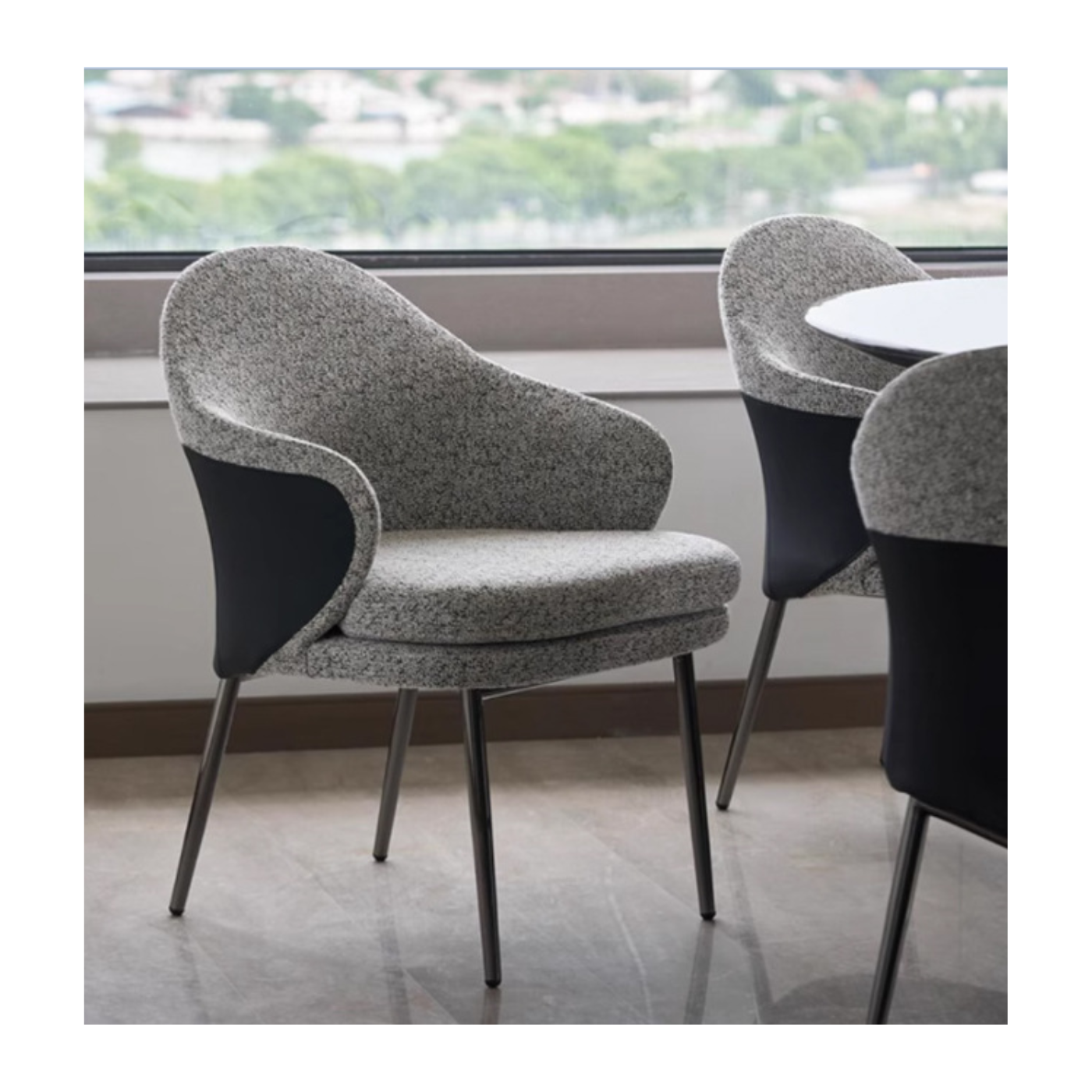 This dining chair combines modern aesthetics with comfort, featuring a sleek design that enhances any dining space. The chair’s gracefully curved backrest, reminiscent of elegant wings, provides both support and a distinctive visual appeal. Upholstered in high-quality fabric or leather, it offers a plush seating experience, making it perfect for long meals and gatherings. The chair’s streamlined silhouette is complemented by sturdy yet stylish legs, ensuring stability without sacrificing style. Whether placed around a contemporary dining table or in a cozy nook, this chair adds a touch of sophistication and elegance to your home.