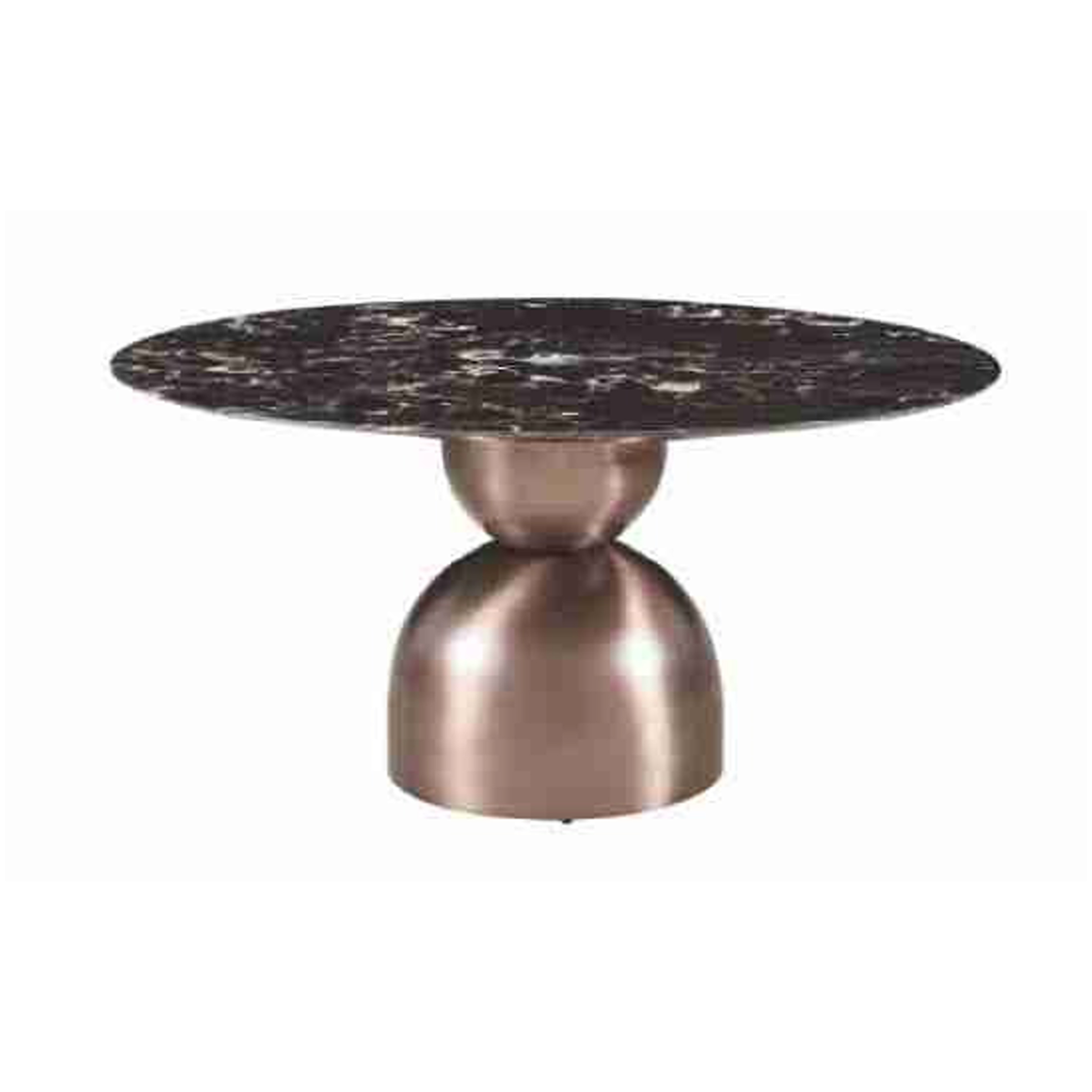 This round dining table is the epitome of modern luxury, featuring a striking black marble top that exudes elegance and sophistication. The bold gold monolith leg provides a powerful contrast, adding a touch of grandeur and refinement to the piece. The rich veining in the marble offers a unique, timeless aesthetic, while the monolith base grounds the design with its sleek, architectural form. Perfect for contemporary dining spaces, this table effortlessly blends artistry and function, creating a captivating focal point in any room.