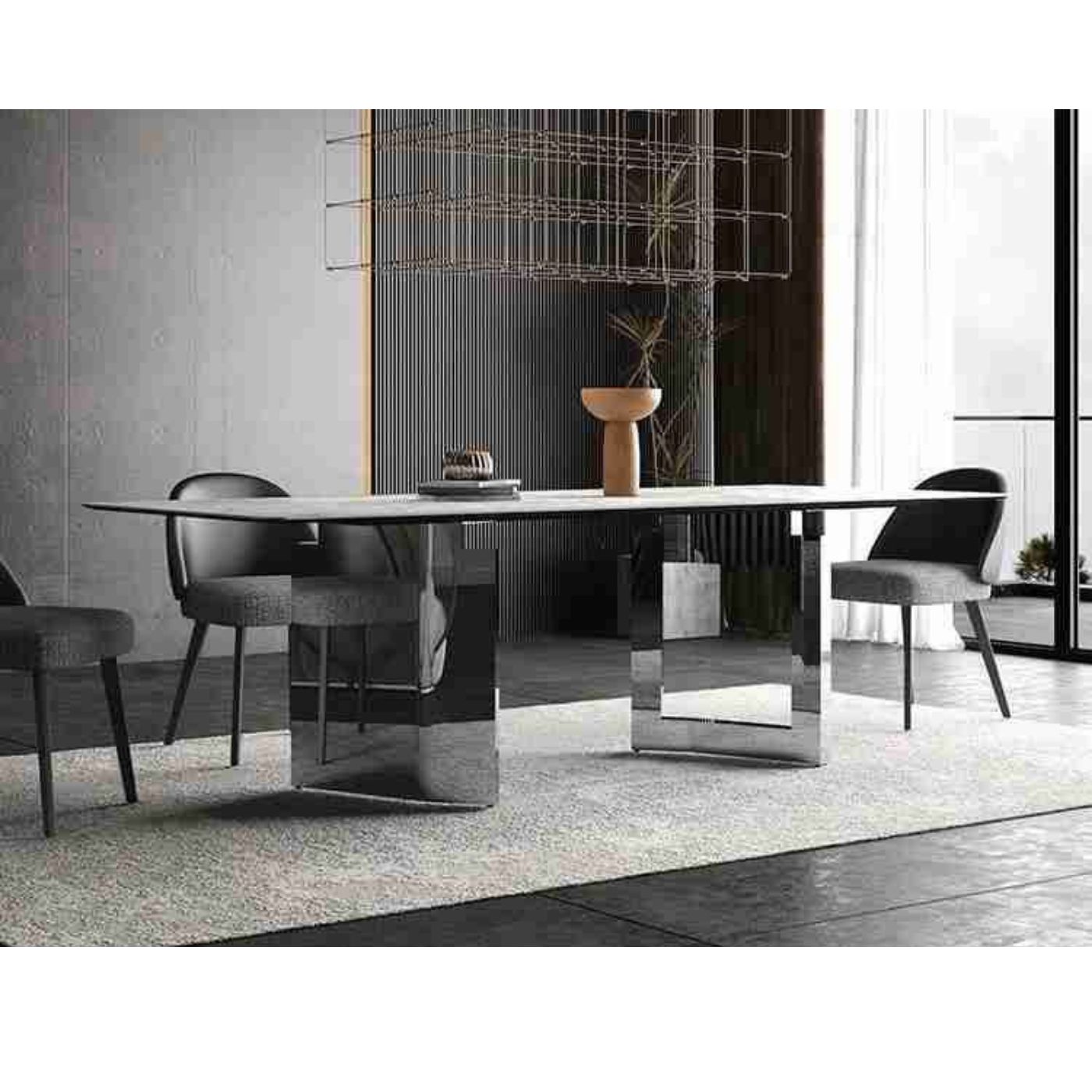 The Pegasus Dining Table features a light and airy design, blending classic elegance with a modern touch.