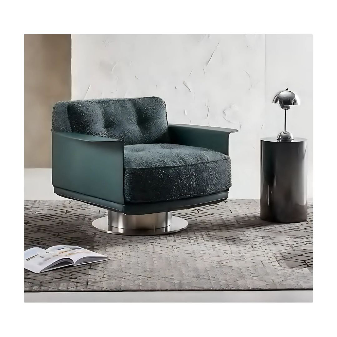 Experience refined comfort with this armchair, featuring luxurious green boucle fabric that combines texture and warmth with modern design. The plush boucle upholstery offers a soft, tactile experience, while the sleek, minimalistic frames provide a striking contrast, creating a perfect balance between comfort and style. The rich green hue adds a natural, calming touch, making this chair an elegant addition to any living room, office, or lounge space. Whether as a statement piece or a cozy reading chair, it brings both sophistication and contemporary flair to your home.