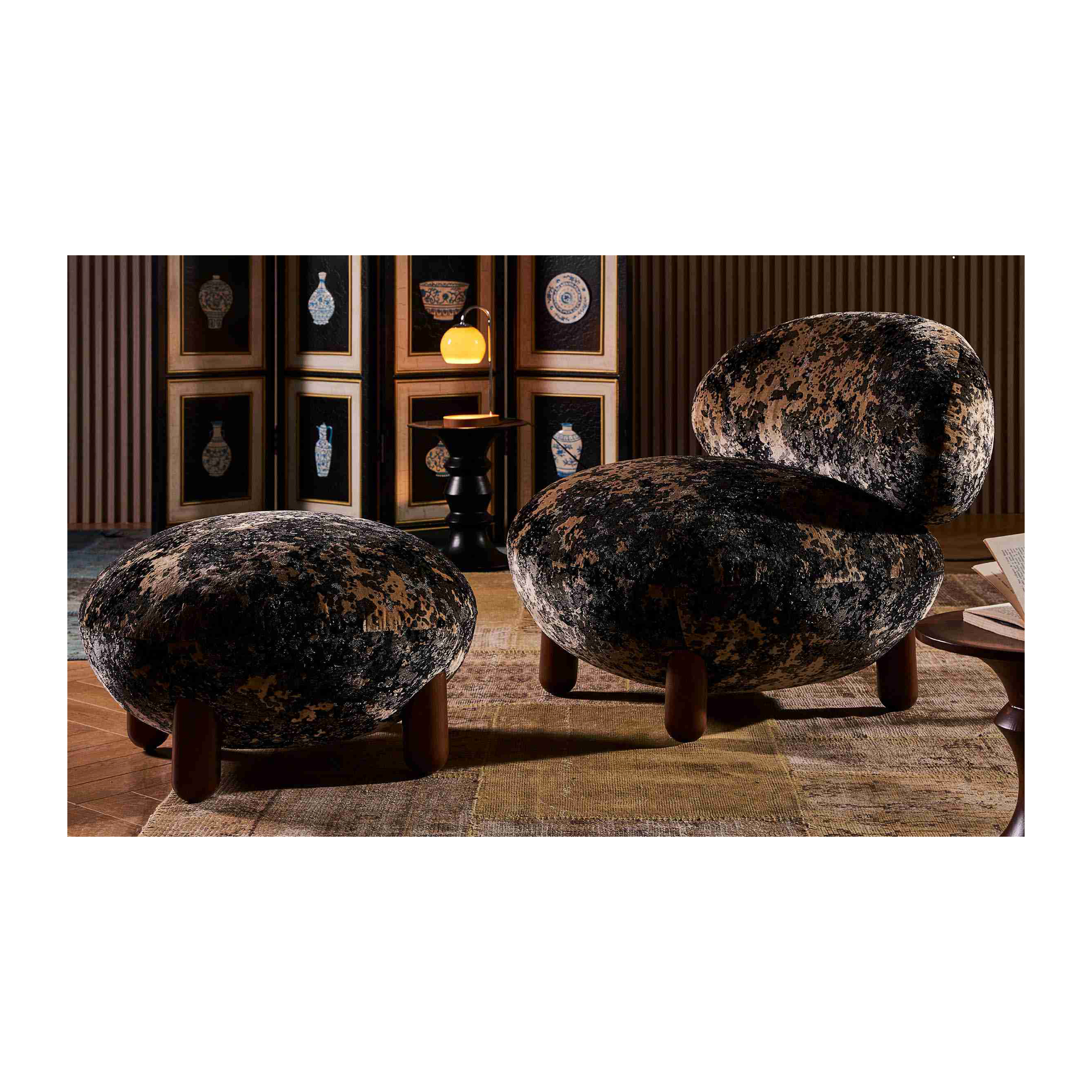 The Rifugio armchair is the epitome of comfort and distinctive design, featuring a bulky, plush silhouette that invites you to sink in and unwind. Upholstered in a unique textured fabric, this chair offers a sensory experience, combining softness with an intriguing tactile appeal that sets it apart from traditional seating options.