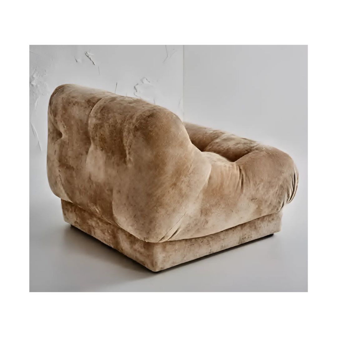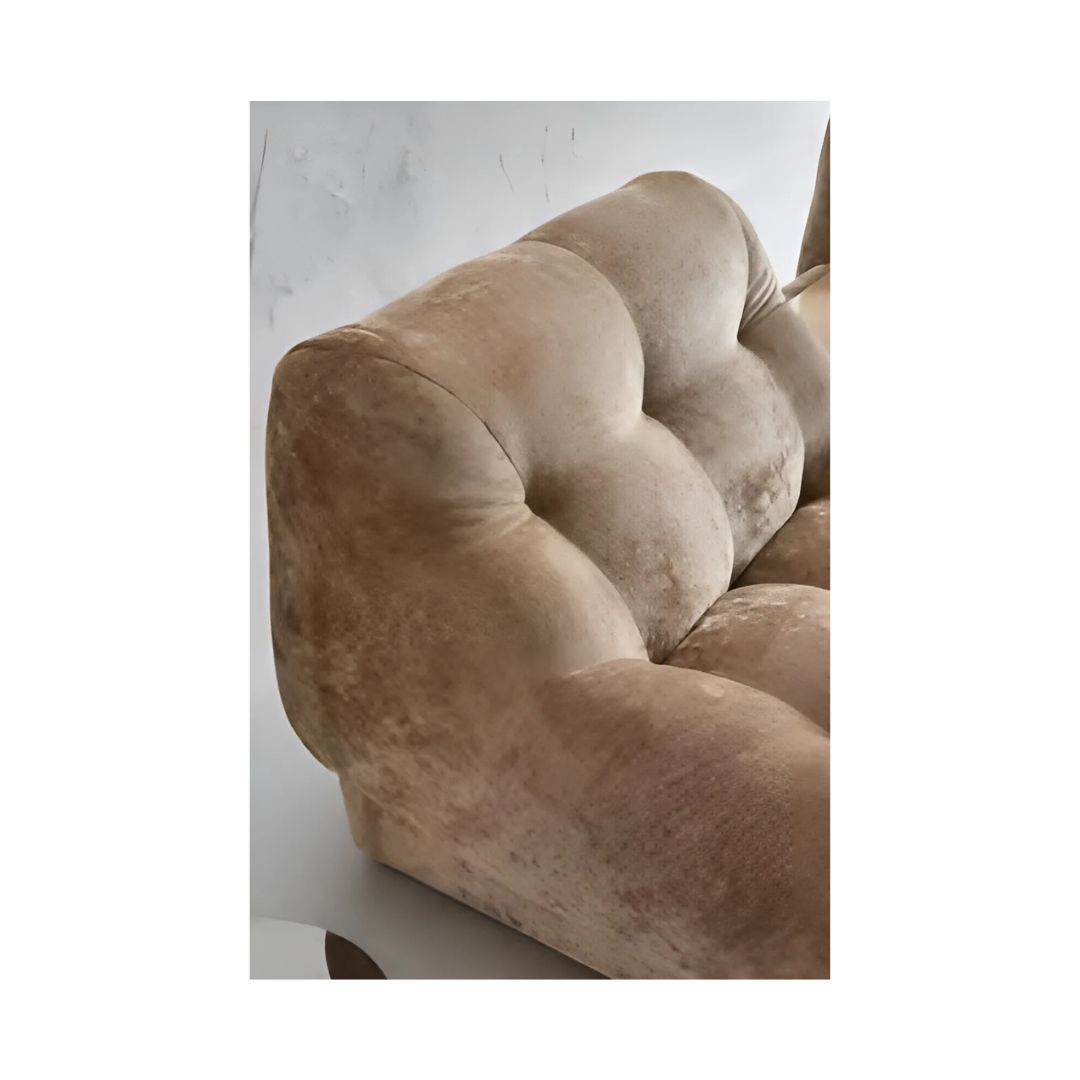 This armchair in rich mustard velvet offers a perfect blend of comfort and elegance, featuring intricate tufting details that add depth and texture to its luxurious fabric. The soft, velvety upholstery creates a warm, inviting atmosphere, while the tufted design brings a touch of classic sophistication. The vibrant mustard color adds a pop of boldness to any room, making this chair a striking focal point in your living room, office, or lounge. Its timeless appeal, combined with the plush comfort of velvet, makes it an ideal choice for those who appreciate both style and relaxation.