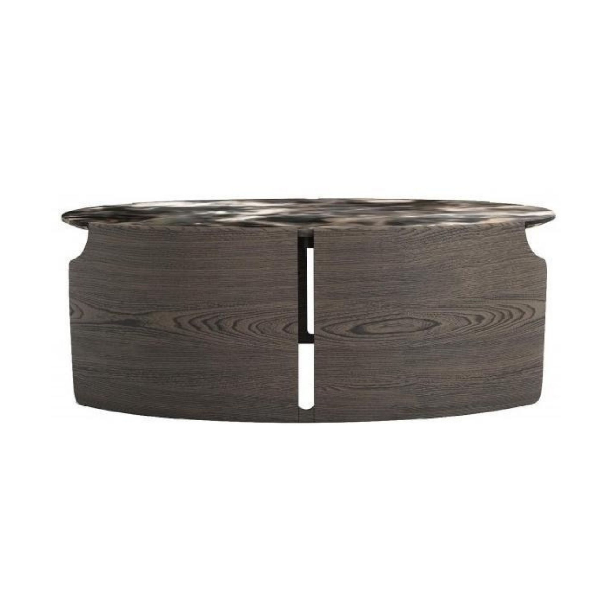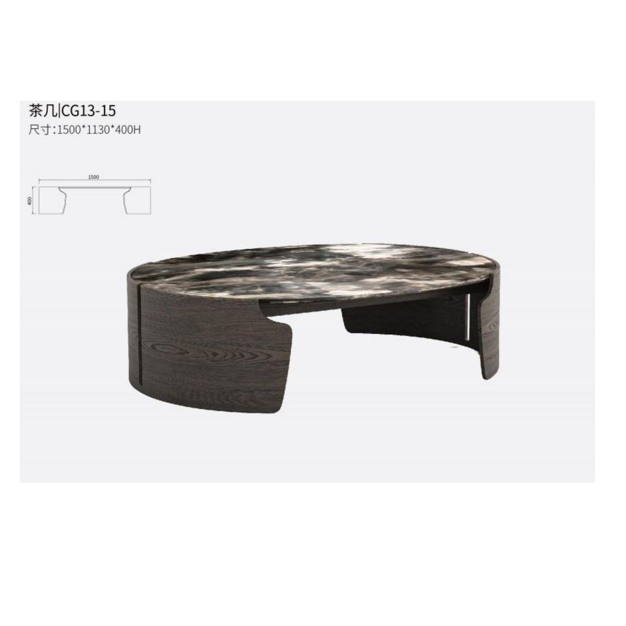 Design concept:The texture of imported Venetian gold marble presents a vast and magnificent scene,and the design of the auspicious cloud elements on the edge implies auspiciousness.The texturedashwood is like a hard rock,representing the quality of perseverance without pursuing gorgeous appearance.While maintaining the oval shape of the overall coffee table,the lines on the side of the coffee table are increased,making the coffee table round and angular,and adding