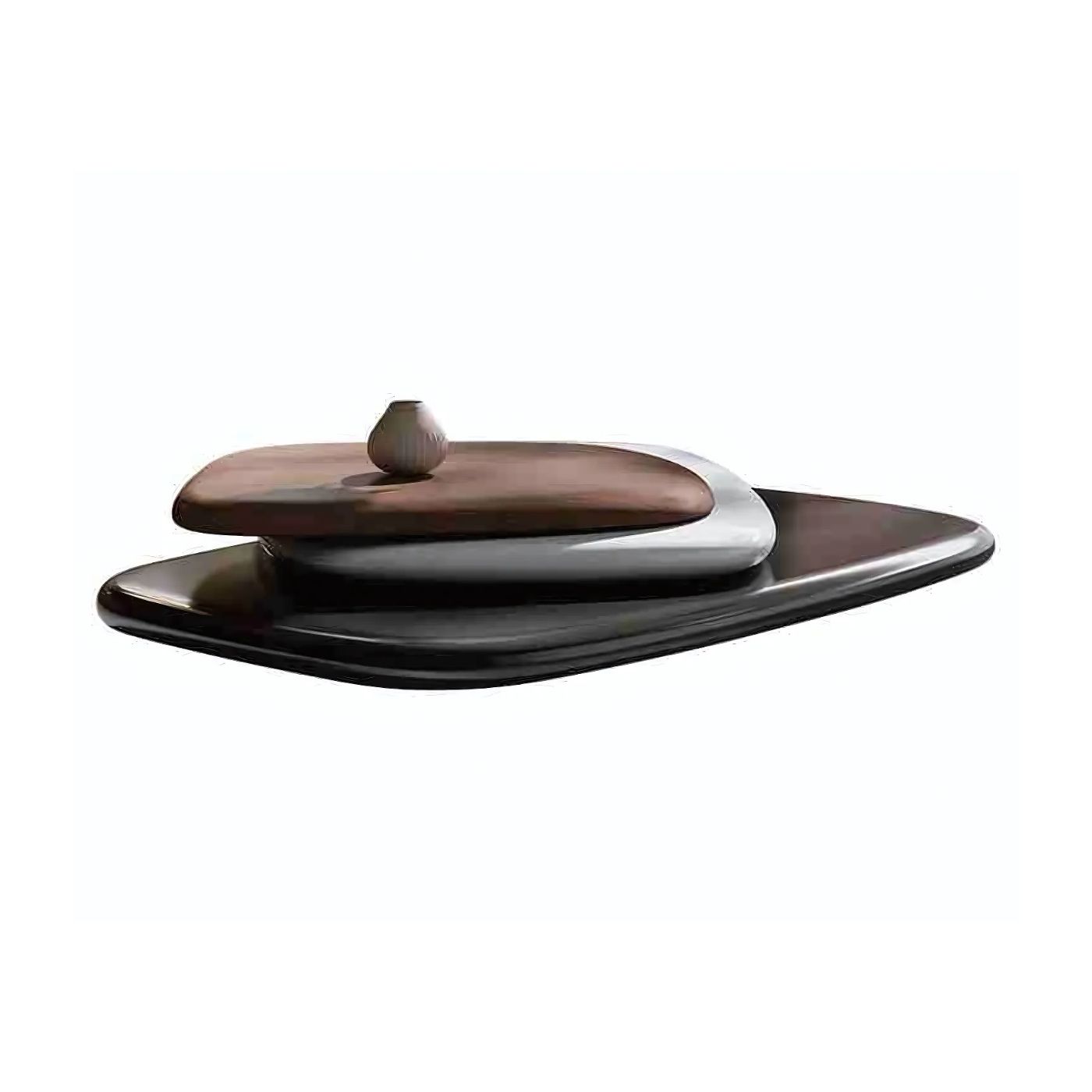 This coffee table showcases a stunning design with three organically shaped slabs stacked gracefully, creating a fluid and sculptural presence in any living space. Each slab features smooth, flowing edges that mimic the natural contours of stone, offering a sense of movement and harmony. The varying levels of the slabs provide both visual interest and functional surfaces, allowing for dynamic arrangements of decor or essentials. Cascata blends art and functionality, making it a standout piece that brings a touch of natural elegance and modern sophistication to any room.