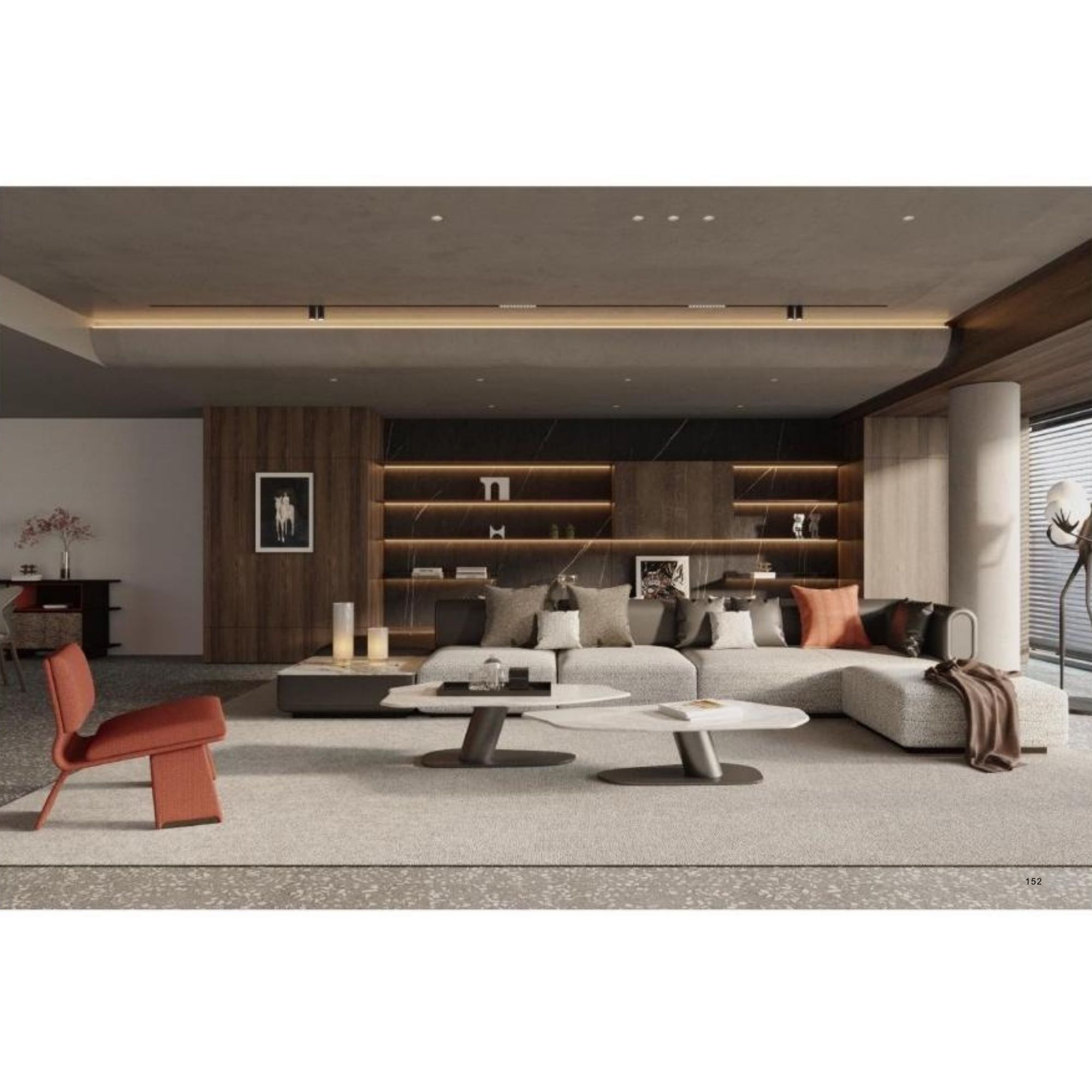 Design concept:The Dawn coffee table,with its soft,delicate,hazy and changeable texture,is as healing as touching the sunshine in the morning.The overalliregular shape gives people a unique artistic atmosphere;the natural contour like a pebble,seemingly irregular shape,is actually a combinationof two pieces of marble to create a Yin-Yang stone tabletop, which incorporates the Chinese design concept of simplicity.
