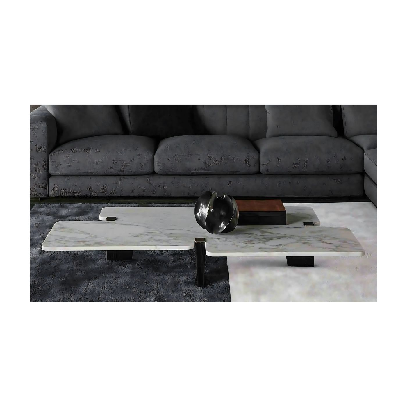 This coffee table showcases a stunning marble top that exudes natural beauty and sophistication. The unique veining of the marble adds character and timeless elegance to any space, making it a perfect statement piece. Paired with a sleek stainless steel base, the table combines modern minimalism with luxurious materials. The sturdy yet refined base provides excellent support, while its clean lines contrast beautifully with the organic patterns of the marble. Designed to be both functional and visually captivating, this coffee table effortlessly enhances any living room, balancing durability with high-end style.