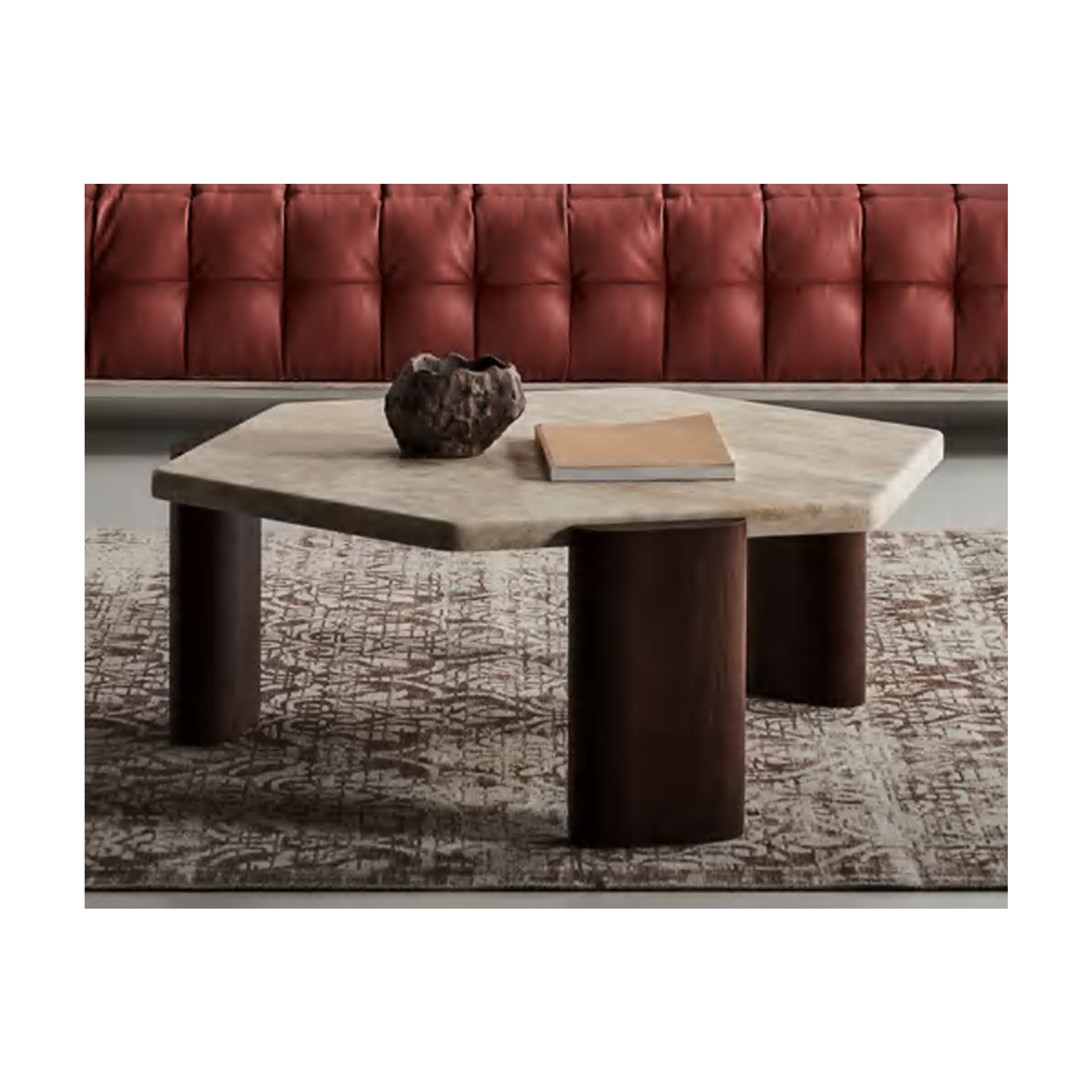 Bring a touch of modern elegance to your living space with this coffee table, featuring wooden legs and a striking hexagon-shaped stone top. The unique geometric design adds a bold, contemporary flair, while the sturdy wooden legs provide a warm, natural contrast to the cool, sleek stone surface. Perfect for adding a sophisticated focal point to any room, this coffee table offers both style and functionality, with ample space for drinks, decor, or magazines. Its versatile design makes it an ideal fit for a variety of décor styles, from minimalist to rustic, making it a timeless addition to your home.