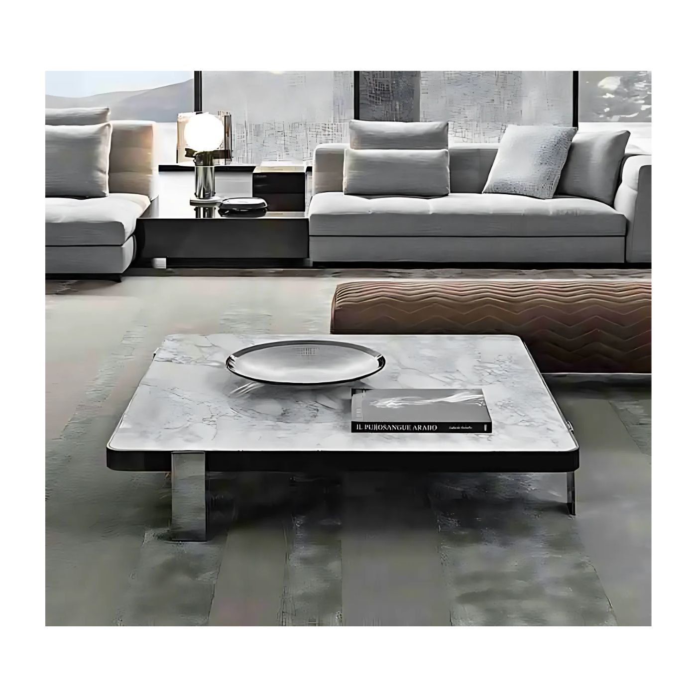 This coffee table exudes modern elegance with its sleek metal legs and durable sintered stone tabletop. The Strati table combines minimalist design with advanced materials, offering a surface that is not only visually striking but also highly resilient. The sintered stone top, crafted through a process of extreme heat and pressure, mimics the natural beauty of stone with intricate patterns and textures while providing exceptional durability. The slim, polished metal legs add a touch of sophistication, ensuring stability without overwhelming the design. Perfect for contemporary spaces, the Strati table is both functional and refined, blending cutting-edge materials with timeless style.