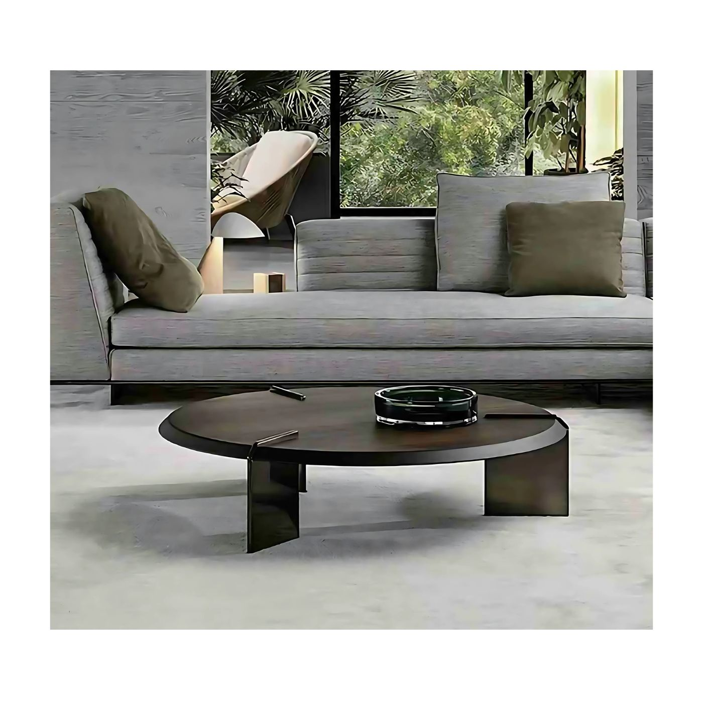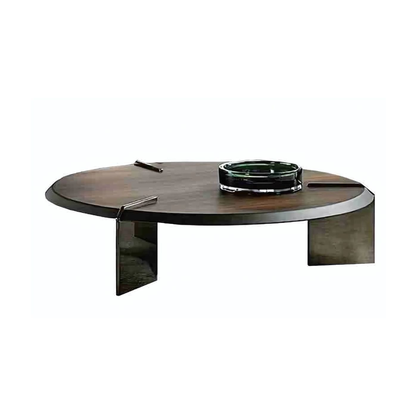 This coffee table features a striking round tabletop supported by three sleek, angular metal legs that add a contemporary edge to the design. The simplicity of the round top creates a sense of openness and flow, while the sharp, plane-like legs form a dynamic contrast, bringing a modern and bold feel to the piece. Trinita blends minimalism with geometric precision, offering a refined and sophisticated look. Its versatile design makes it a perfect addition to any living space, seamlessly integrating into both modern and transitional interiors with a touch of elegance and architectural flair.