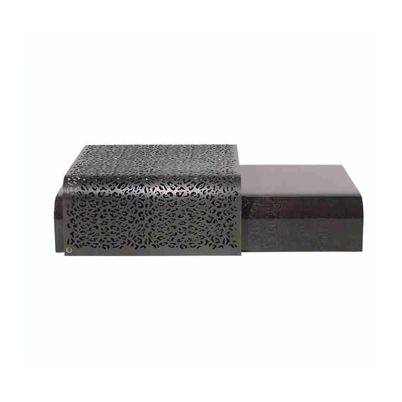 This coffee table exudes contemporary elegance with its stainless steel construction, featuring gracefully curved edges that soften the sharpness of the material. One of the table’s standout features is the intricately patterned cut sheet, which adds a touch of artistry and visual interest. The precision of the cut design contrasts beautifully with the sleek, polished surface of the steel, creating a sophisticated, modern look. Velo is a bold statement piece that combines geometric precision with flowing curves, perfect for adding a unique, stylish touch to any living space. Its high-quality craftsmanship and dynamic design make it a striking centerpiece.