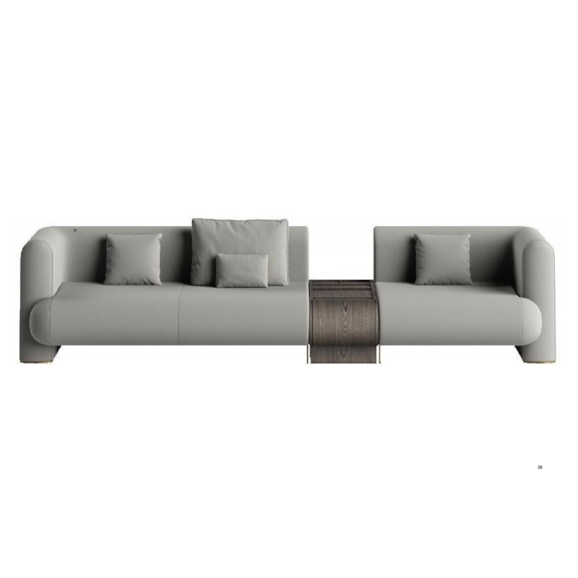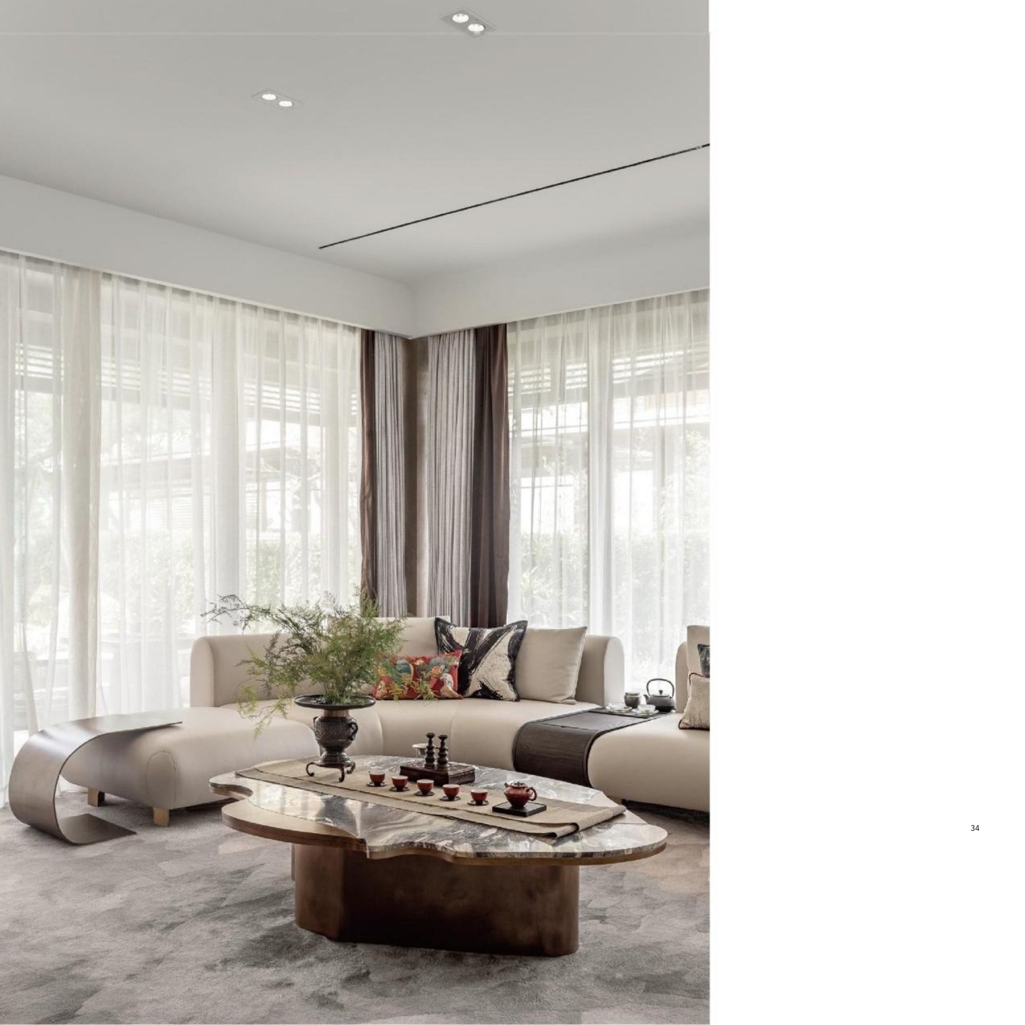 The Yueyuan sofa is designed by our chief designer Mr.Huang Quan. It is tailor-made for customers who live in busy urban areas Itis a representative of modern urban style living rooms. It is mostly rounded and full of clean lines, but it is almost impossible to see the hard shape, which removes some coldness and adds some warmth. The “in-verted T” shape between the sofa panels adds a sense of design and creates a fashionable and elegant feeling, making people feel comfortable, relax themselves, and enjoy relaxing time here. This sofa, with its pure white upholstery and calm black oak wood cabinet, presents a modern yet classic sense of luxury. The softness of white and the hardness of wood set off each other, just like soft clouds supporting the solid earth, which is both comfortable and durable. This color combination not only makes people feel peaceful and calm but also highlights the owner’s elegant taste and pursuit of quality of life.