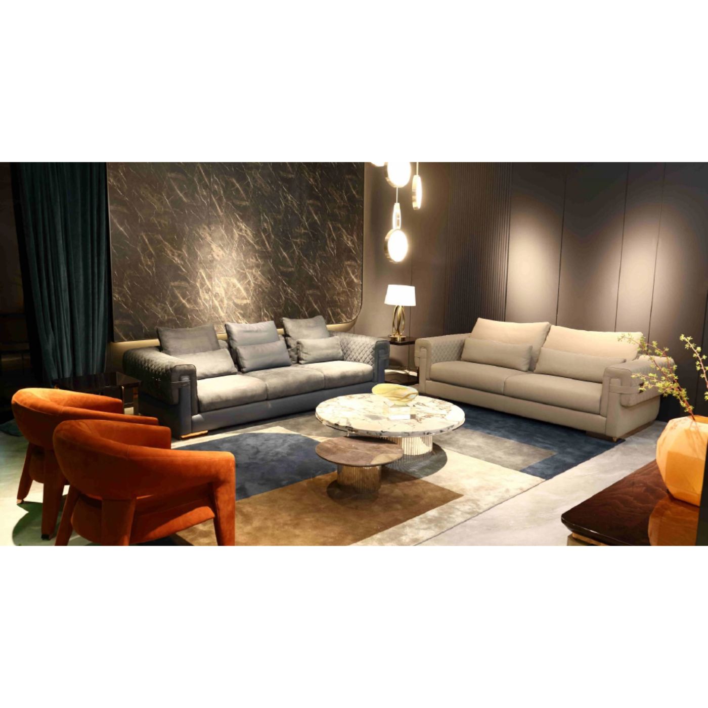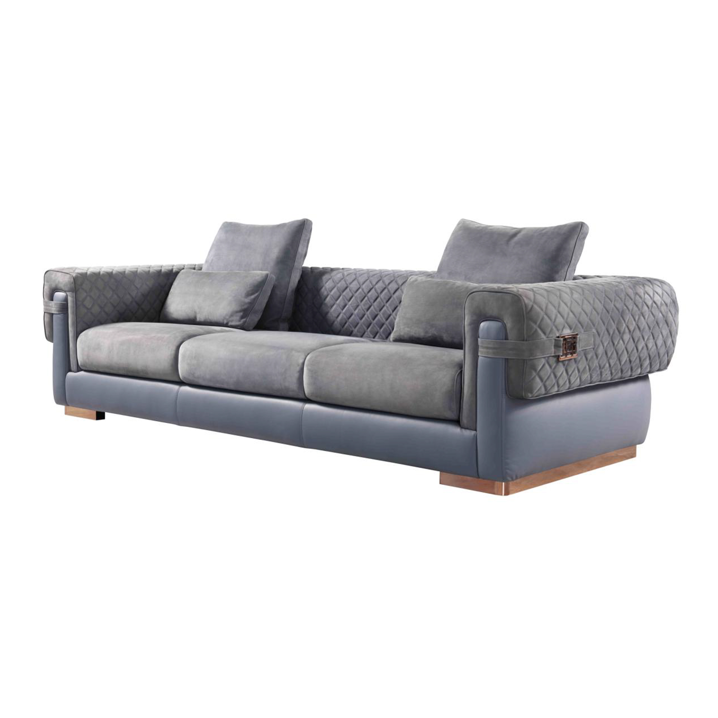 This grayish blue sofa, with its intricate tufting design, blends timeless elegance with a serene, coastal-inspired hue. The delicate tufting across the backrest and arms not only adds texture but also enhances its classic appeal, making it a focal point in any living room. The soft, muted shade of blue infused with gray tones brings a calming atmosphere, ideal for creating a relaxing retreat in your home.