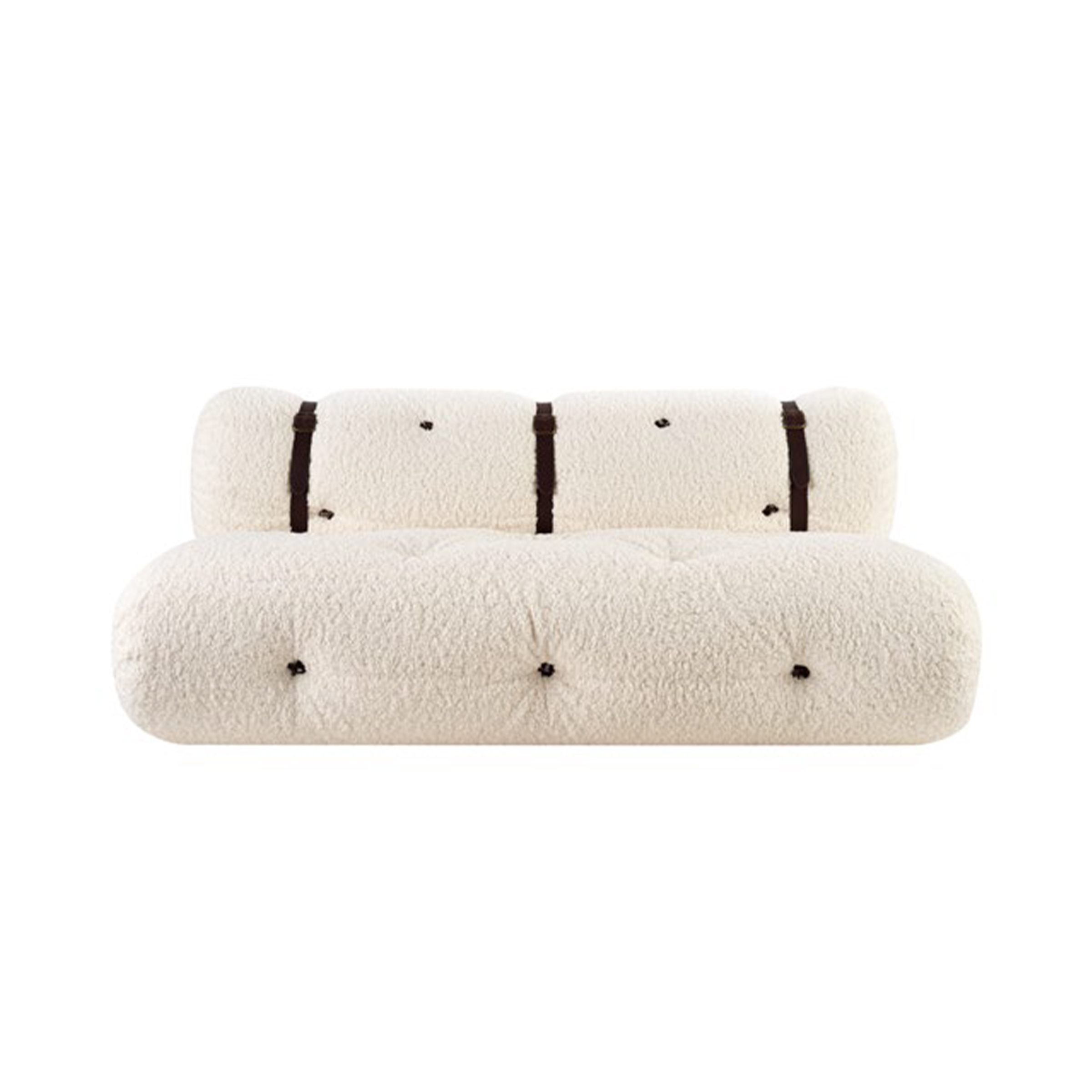 An elegant ivory sofa adorned with distinctive details, offering a unique blend of sophistication and style that elevates any living space.