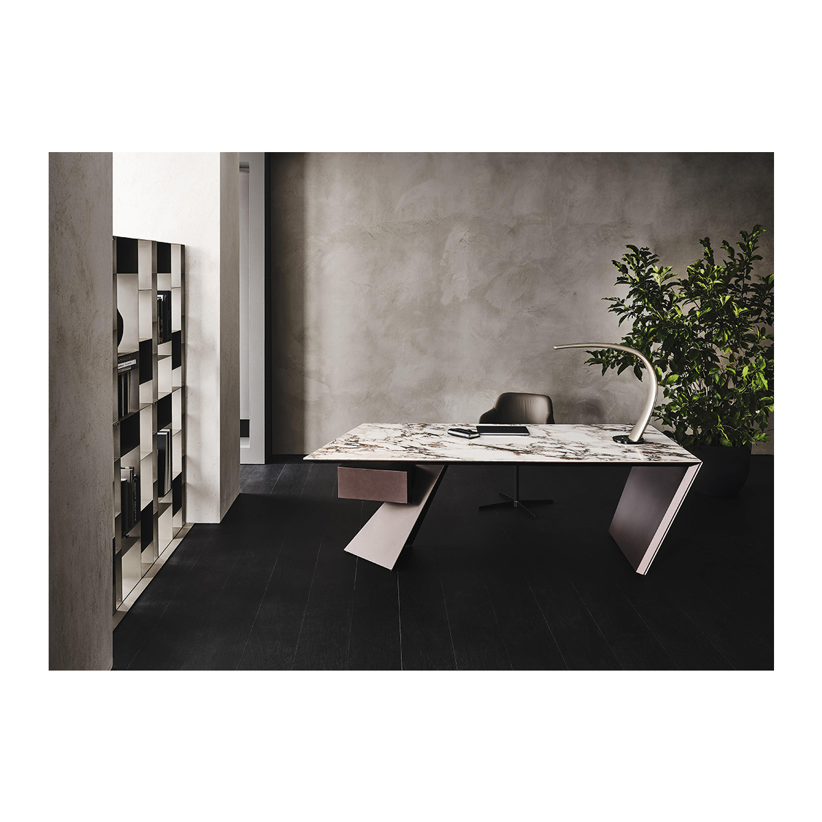 Productive Design The Edge Desk offers an innovative design inspired by origami, featuring clean lines and intricate folds. Its stylish appearance and practical workspace make it a standout piece in any contemporary office.