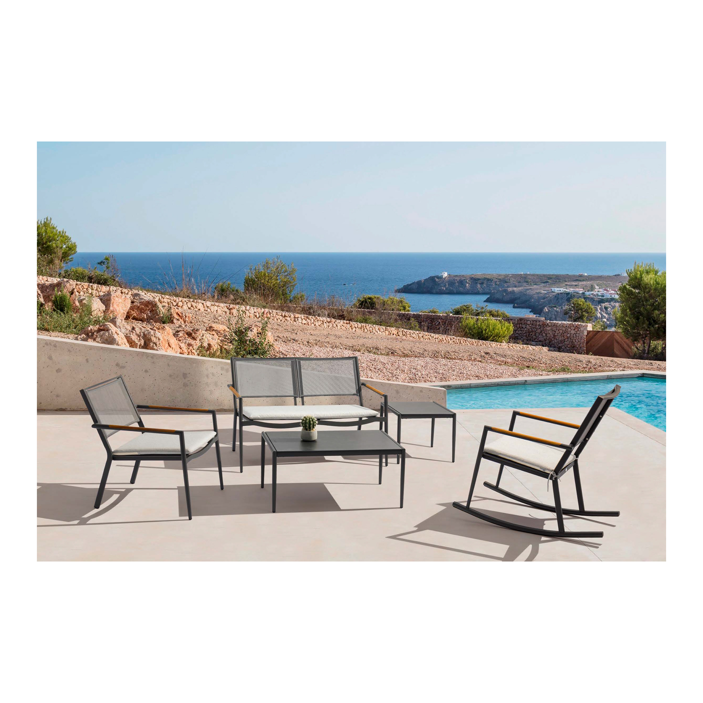 A contemporary outdoor armchair crafted from sleek black metal, offering durability and modern style, perfect for enhancing your outdoor living space.