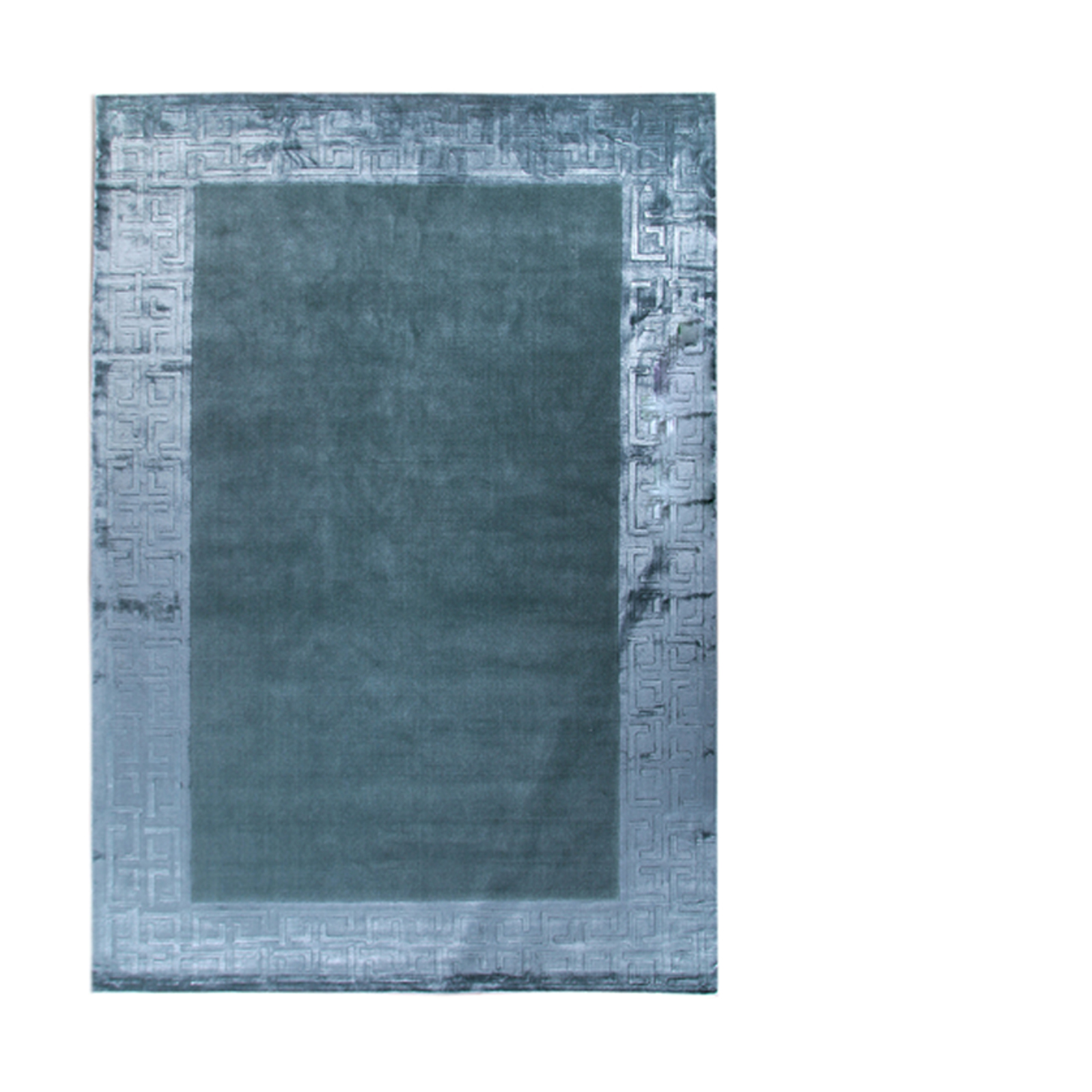 A vibrant aqua blue rug with a border, designed to add a fresh and lively touch to any room while framing your space with a sleek, defined edge.