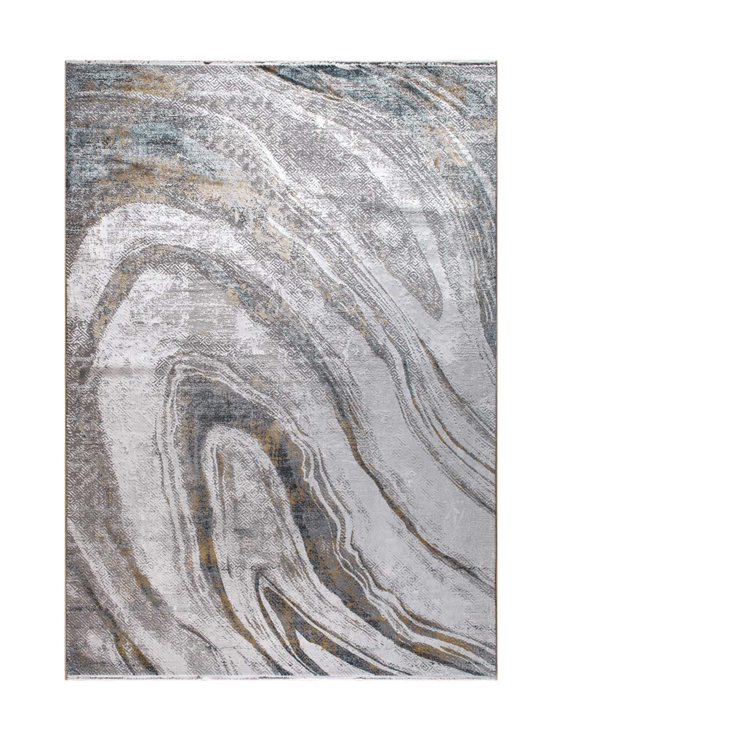 A sleek silver rug with contour-like lines, offering a modern and elegant design that adds a refined shimmer and subtle sophistication to any space.