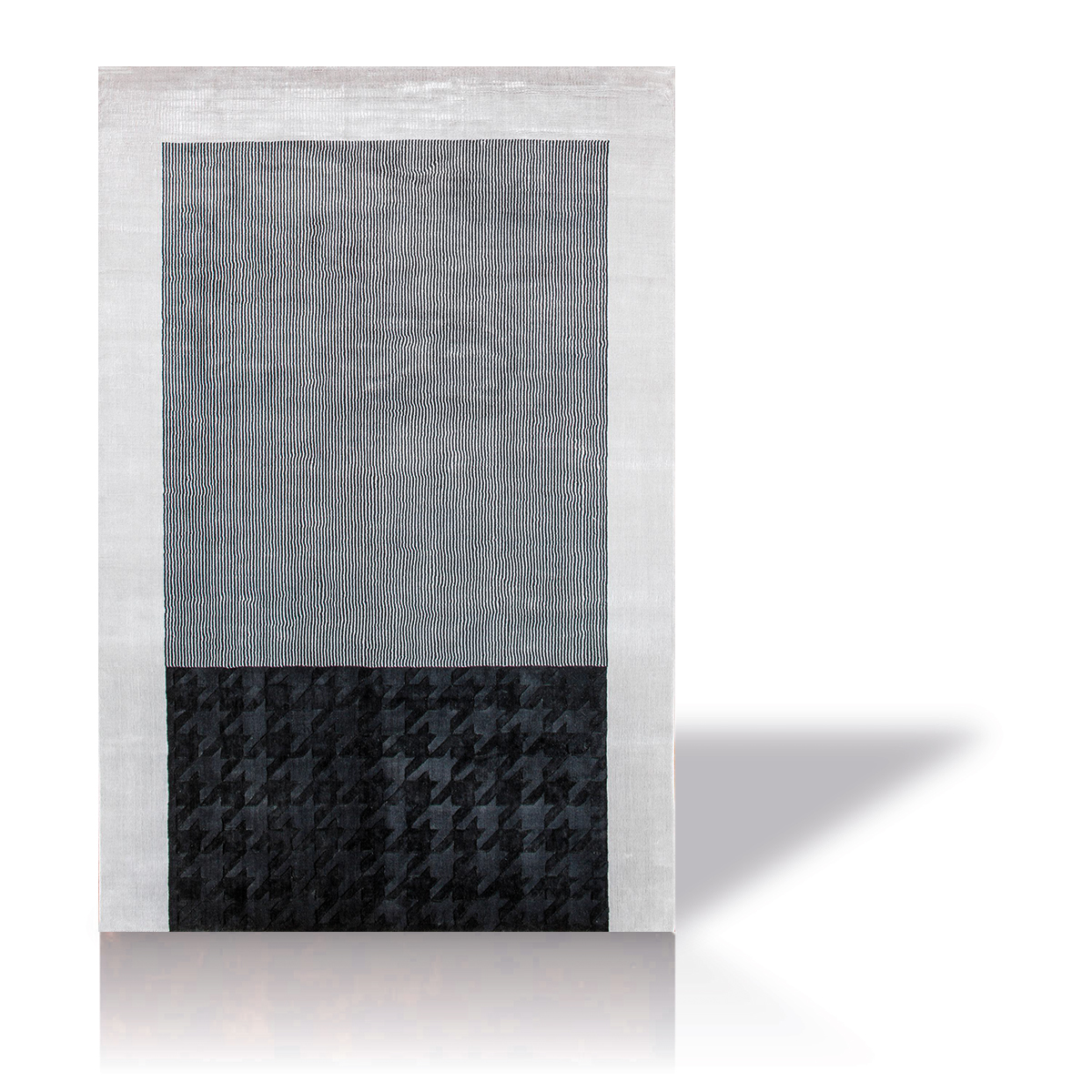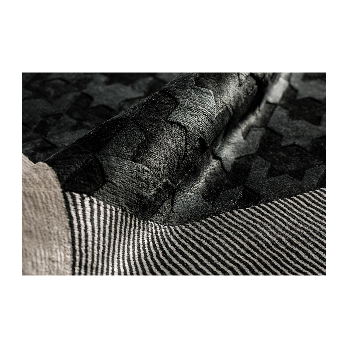 Chic Design, Premium Quality The Ebony Rug in black and beige showcases a chic design with high-quality craftsmanship. Its sophisticated line patterns and luxurious texture make it a standout piece that enhances the elegance of any room.