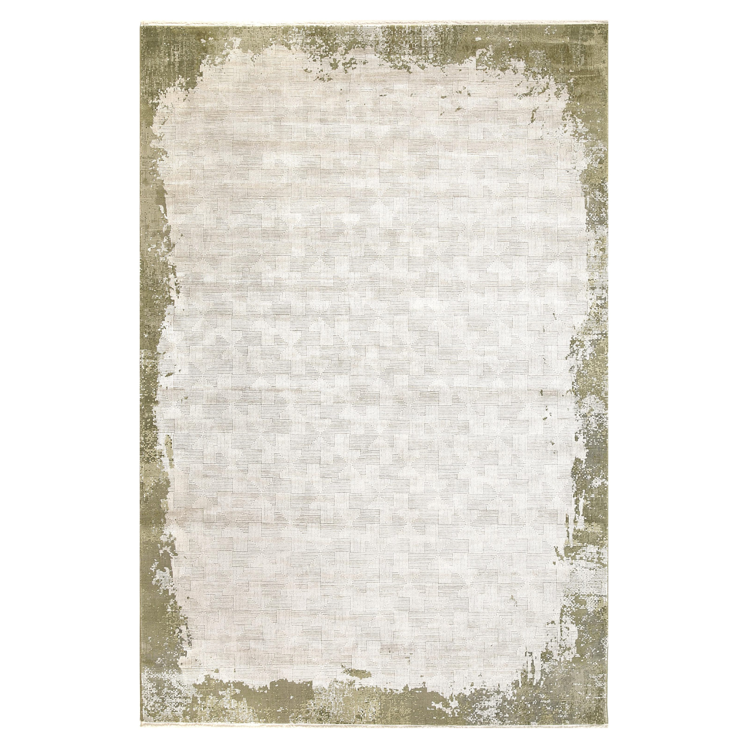 A rug with golden edges and a sleek pattern, combining a touch of luxury with modern design to create a sophisticated and eye-catching centerpiece.