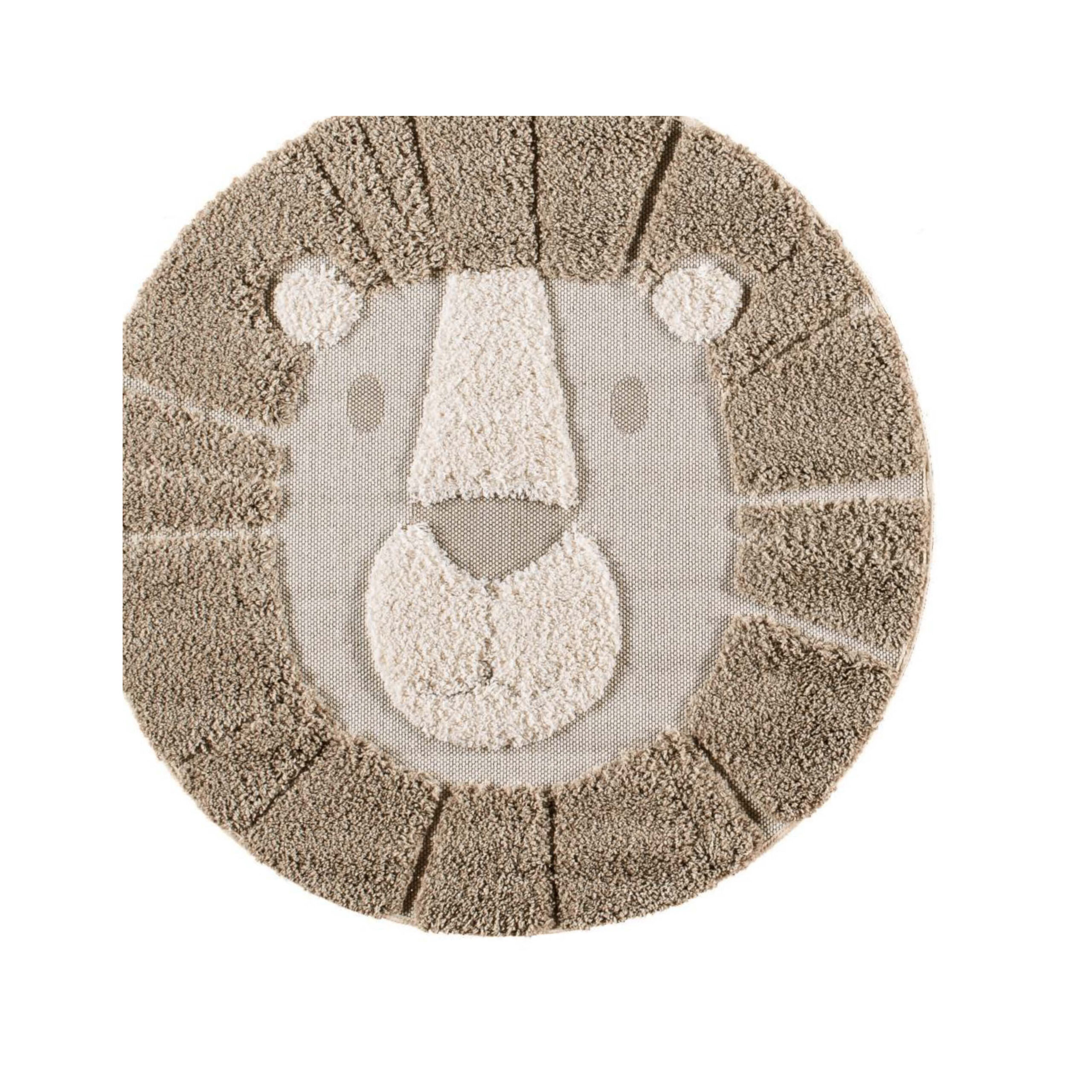 A playful round rug with a friendly lion design, perfect for brightening up any kid’s room or play area with fun and adventure.