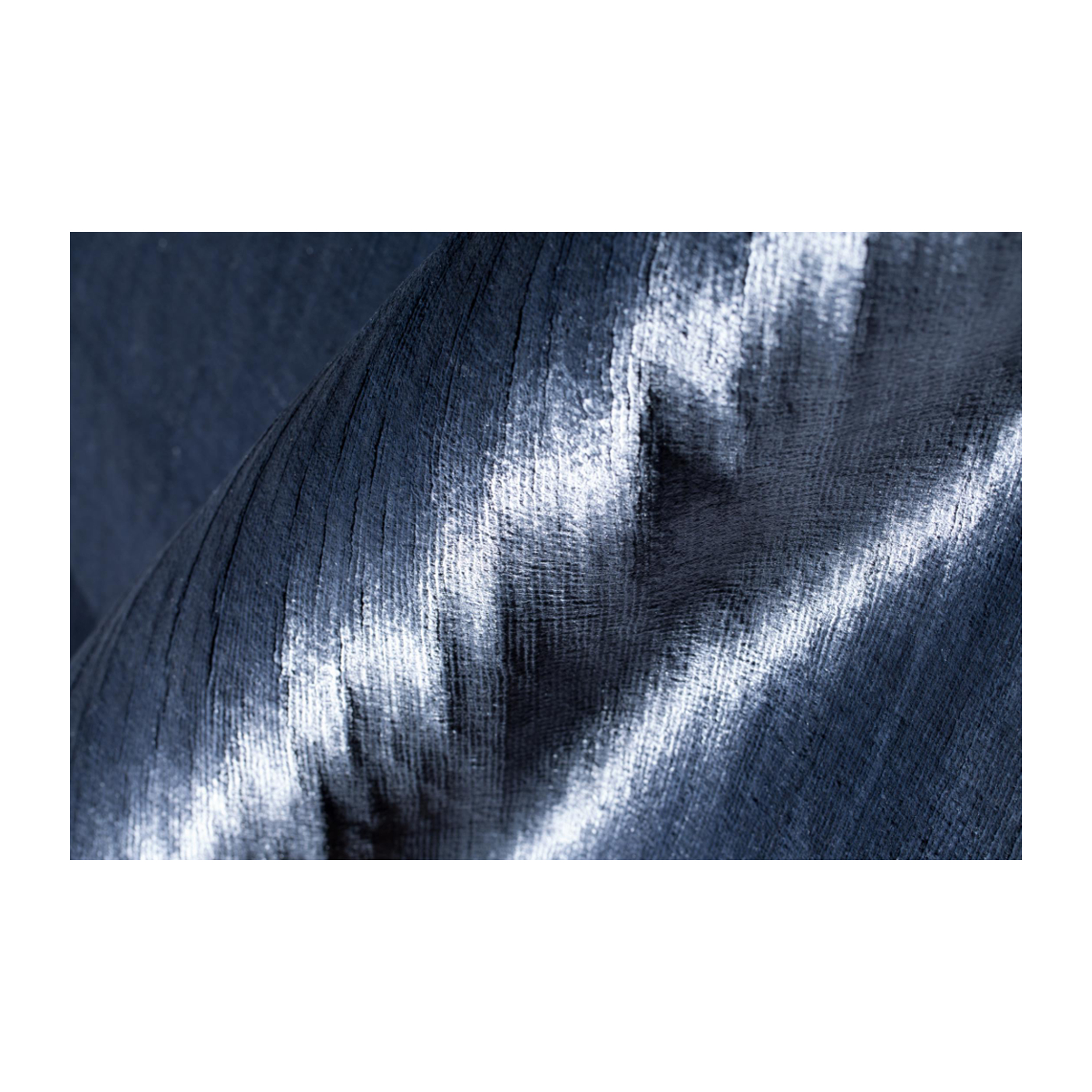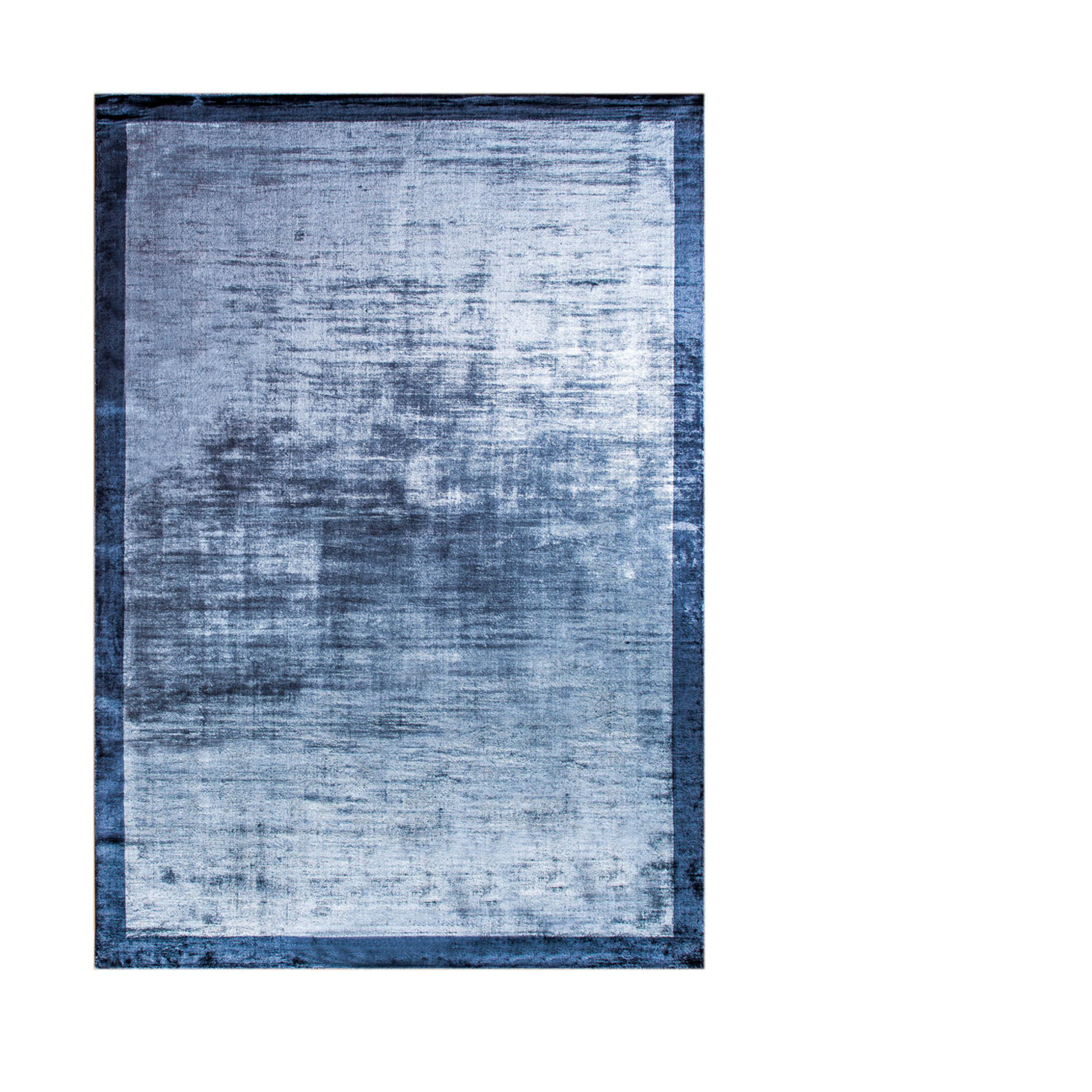 A striking rug in rich blue with a silver shine and a dark blue border, combining vibrant color with a touch of elegance to create a sophisticated and eye-catching focal point.