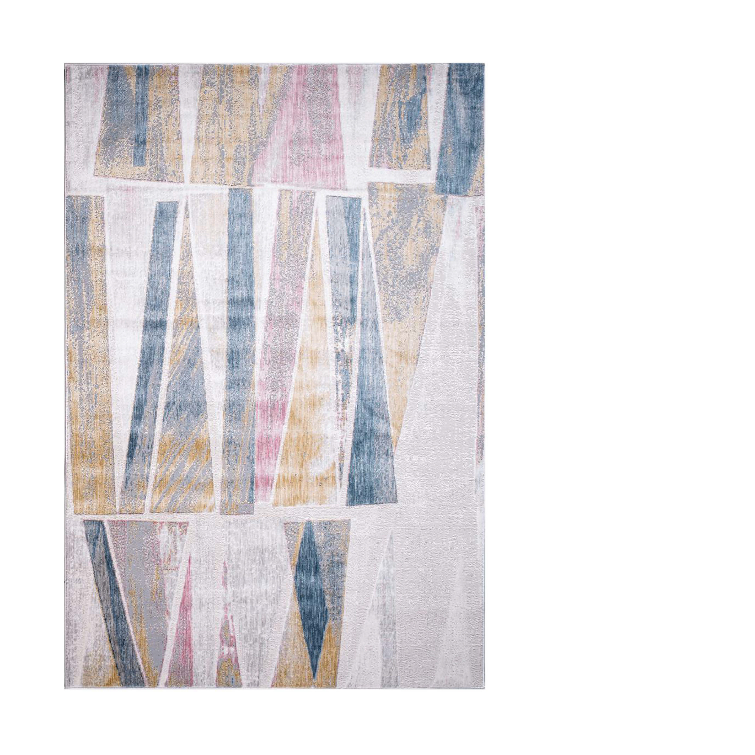 A beautifully crafted rug in soft pastel colors with artistic shapes, creating a serene and visually captivating accent that adds a touch of creativity and calm to any room.