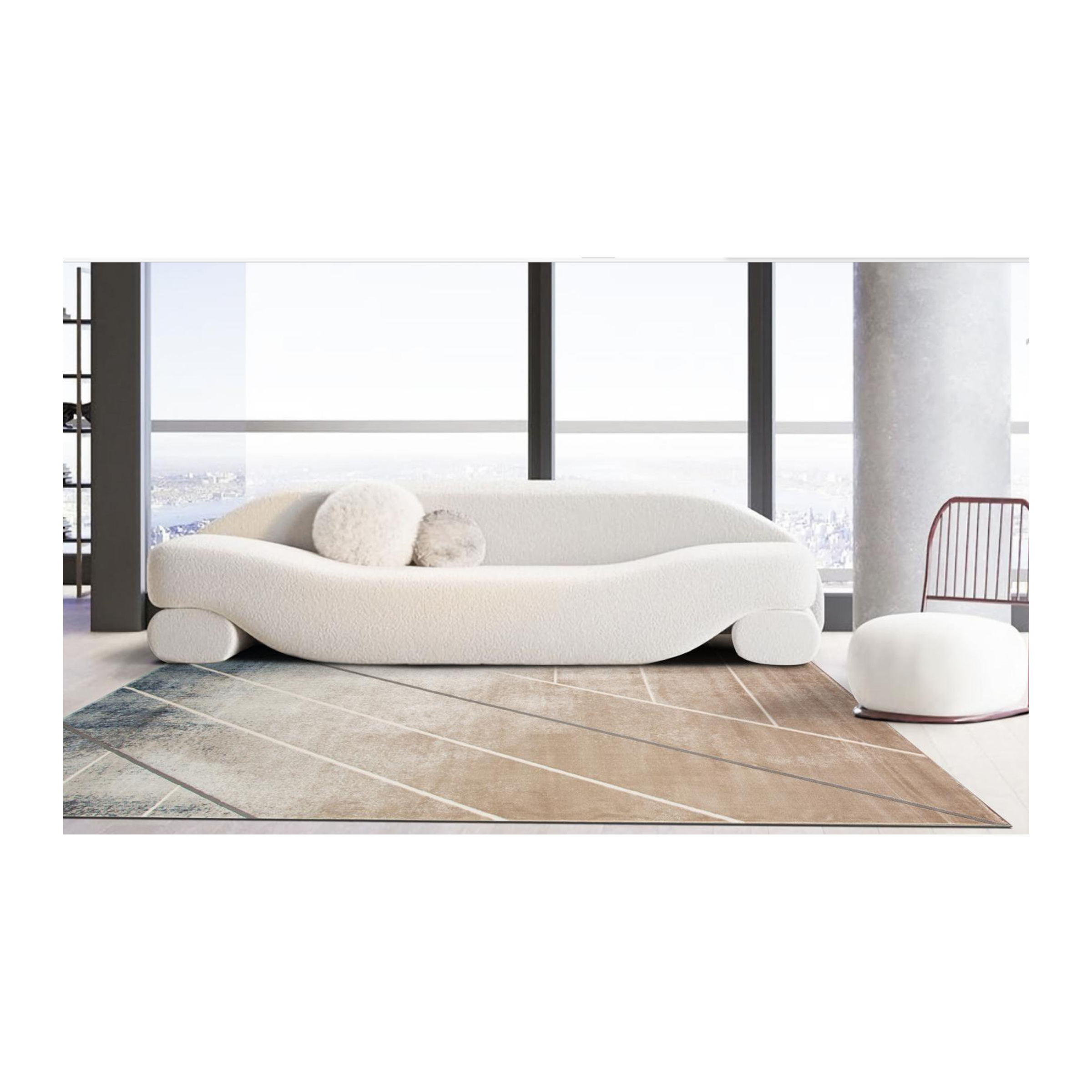 Sandstone Tapestry Rug weaves together beige and brown earth tones in a detailed, tapestry-like pattern. Its intricate design and elegant palette bring an artisanal, warm touch to your roo
