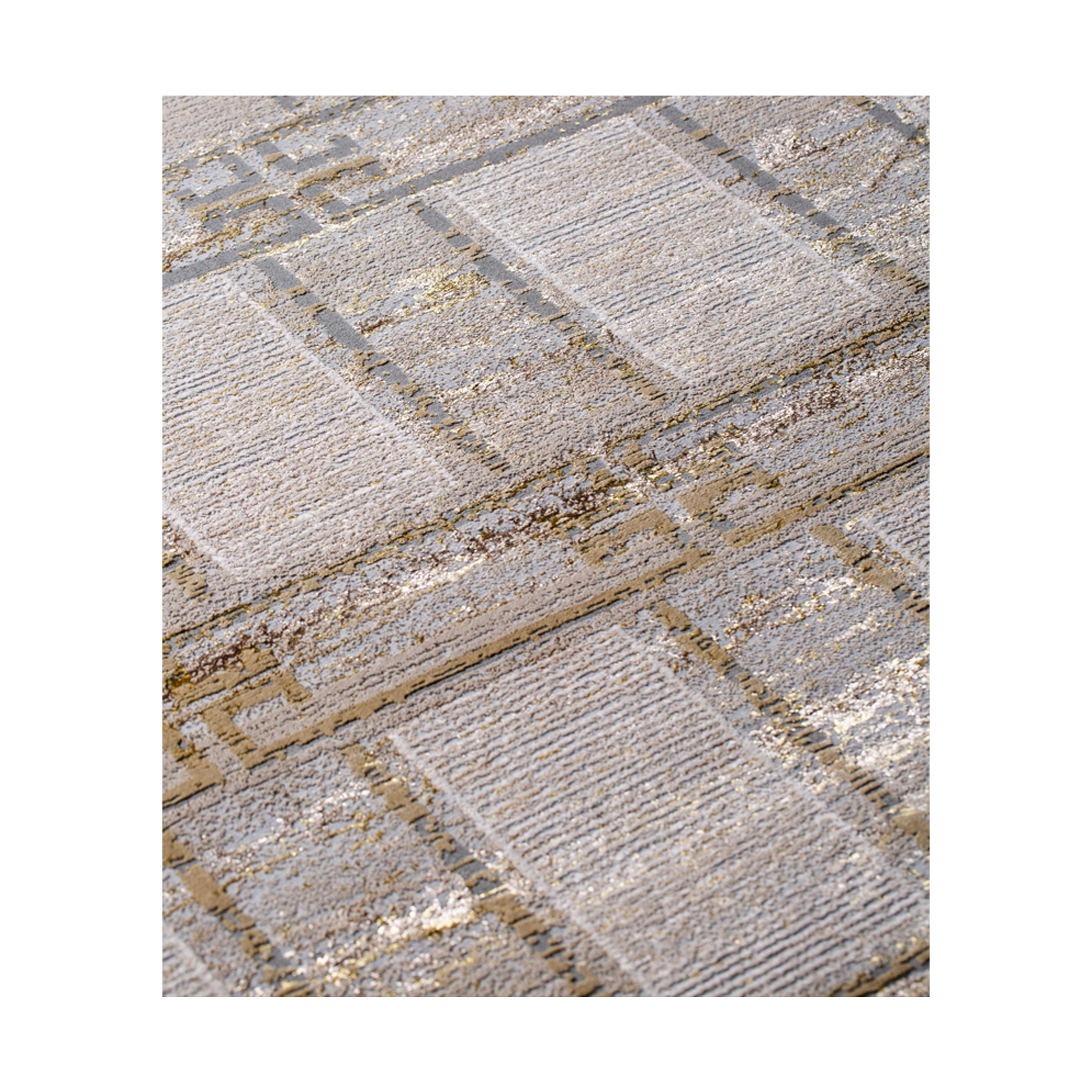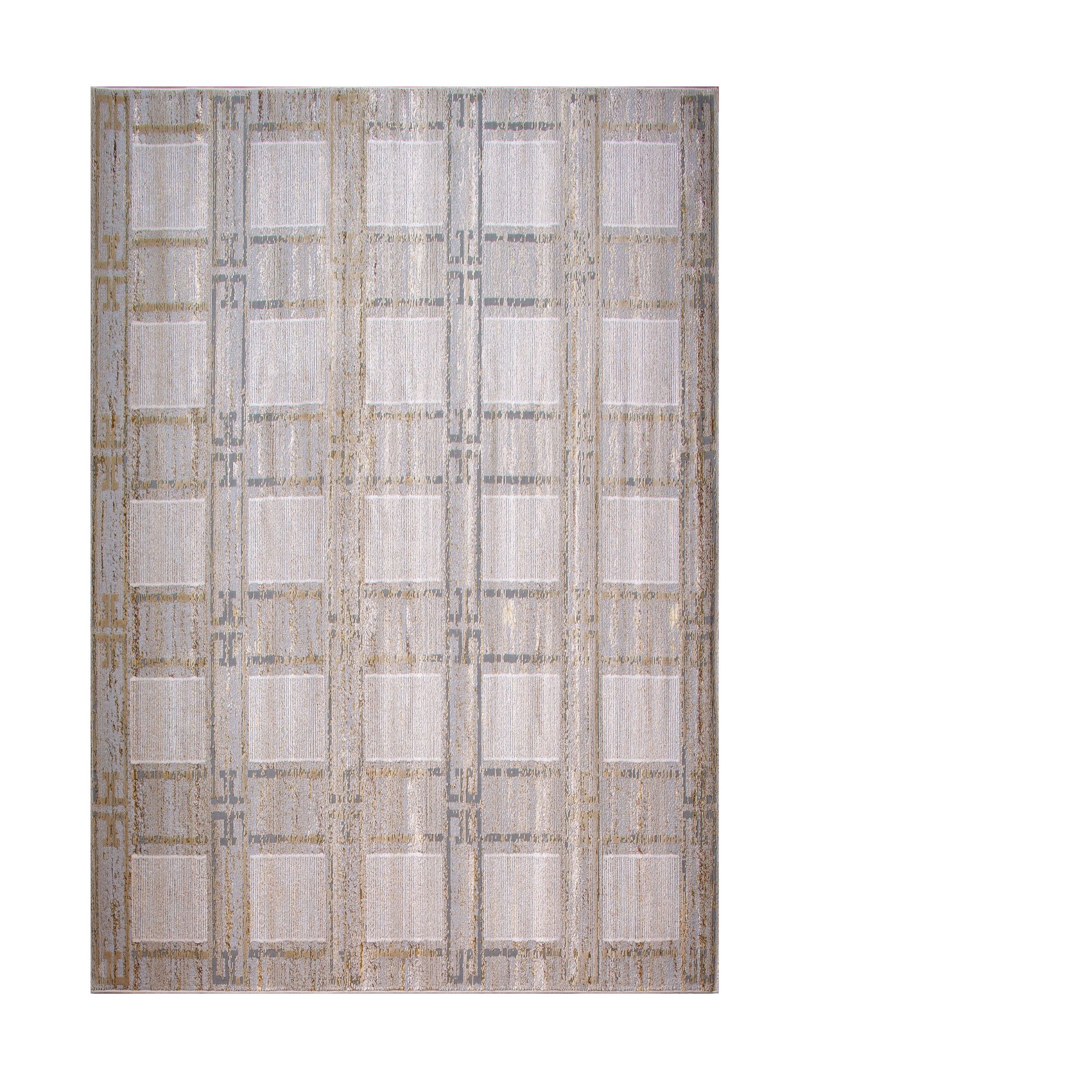 A gentle rug in light taupe featuring a refined grid pattern, providing a modern and understated touch that adds warmth and sophistication to any space.