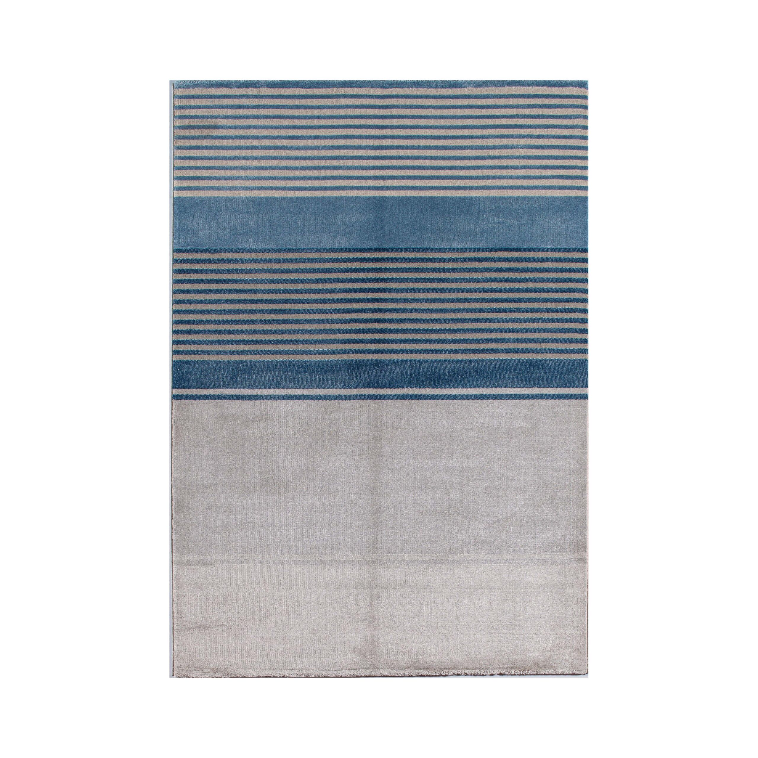 An ivory rug with bold blue stripes, offering a fresh and modern design that adds a touch of vibrant sophistication to any room.