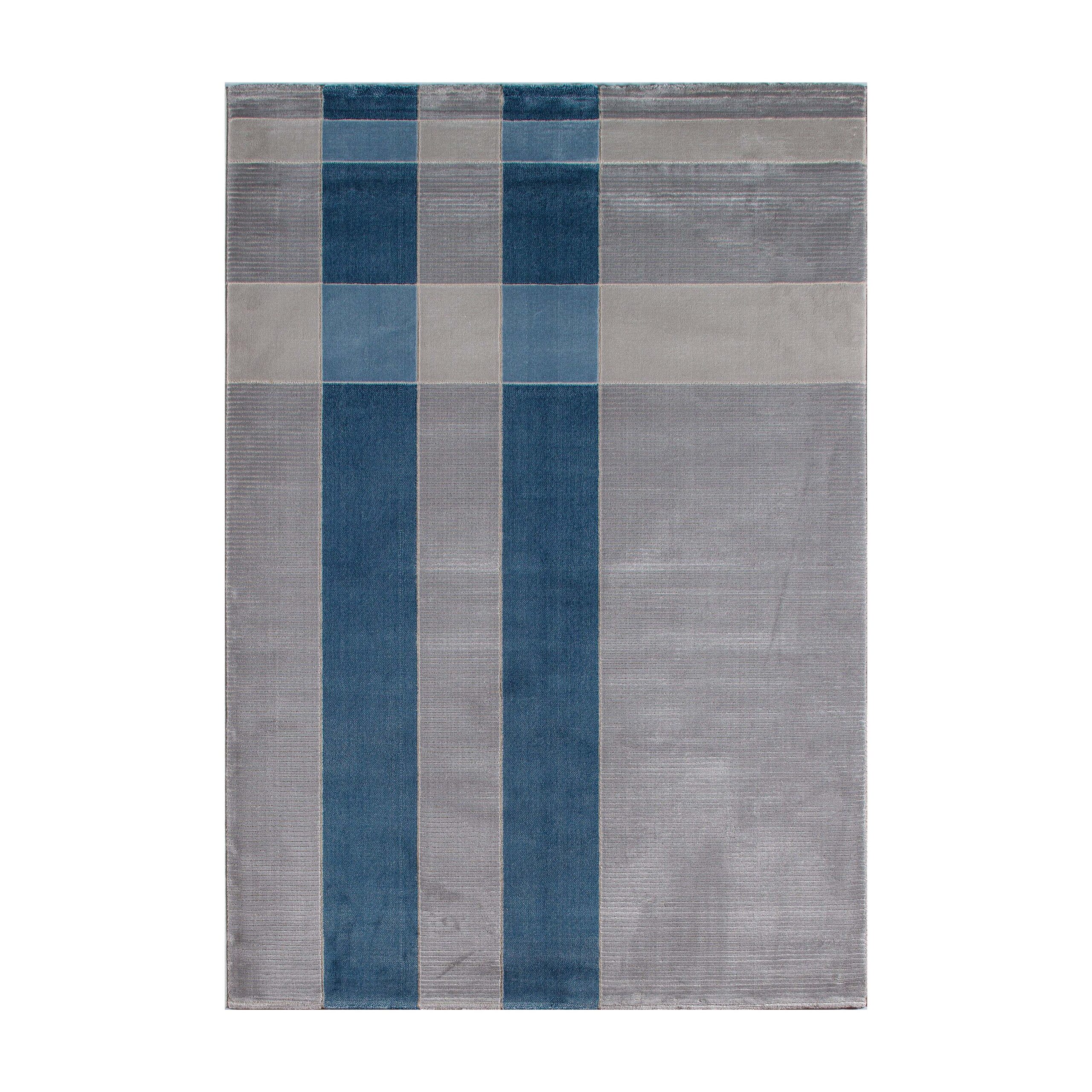 A soft gray rug featuring stripes, creating a balanced and elegant pattern that adds a subtle touch of color and refinement to any space.