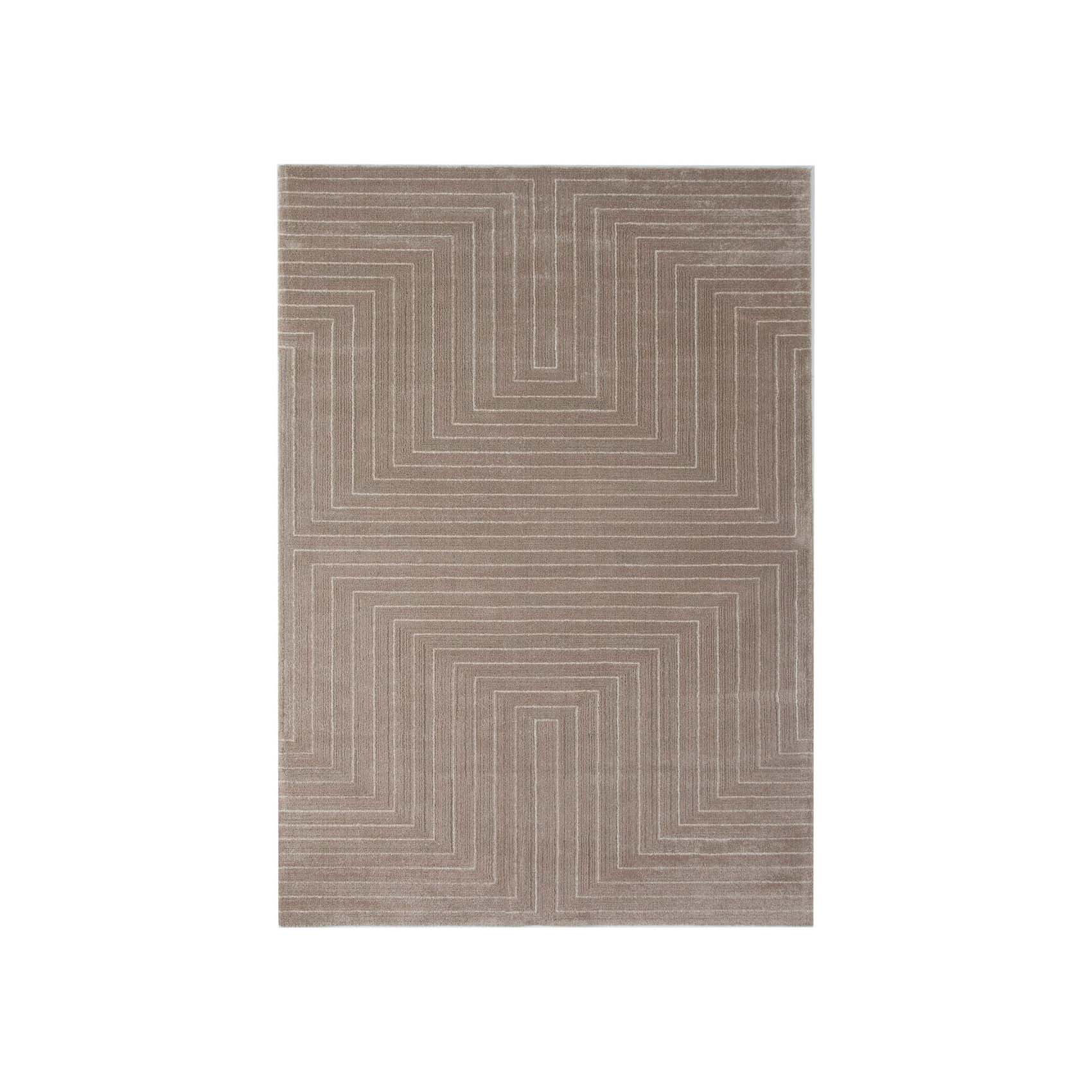 A chic rug in dark beige with sleek, flowing lines, offering a modern and understated look that enhances the sophistication of any room.