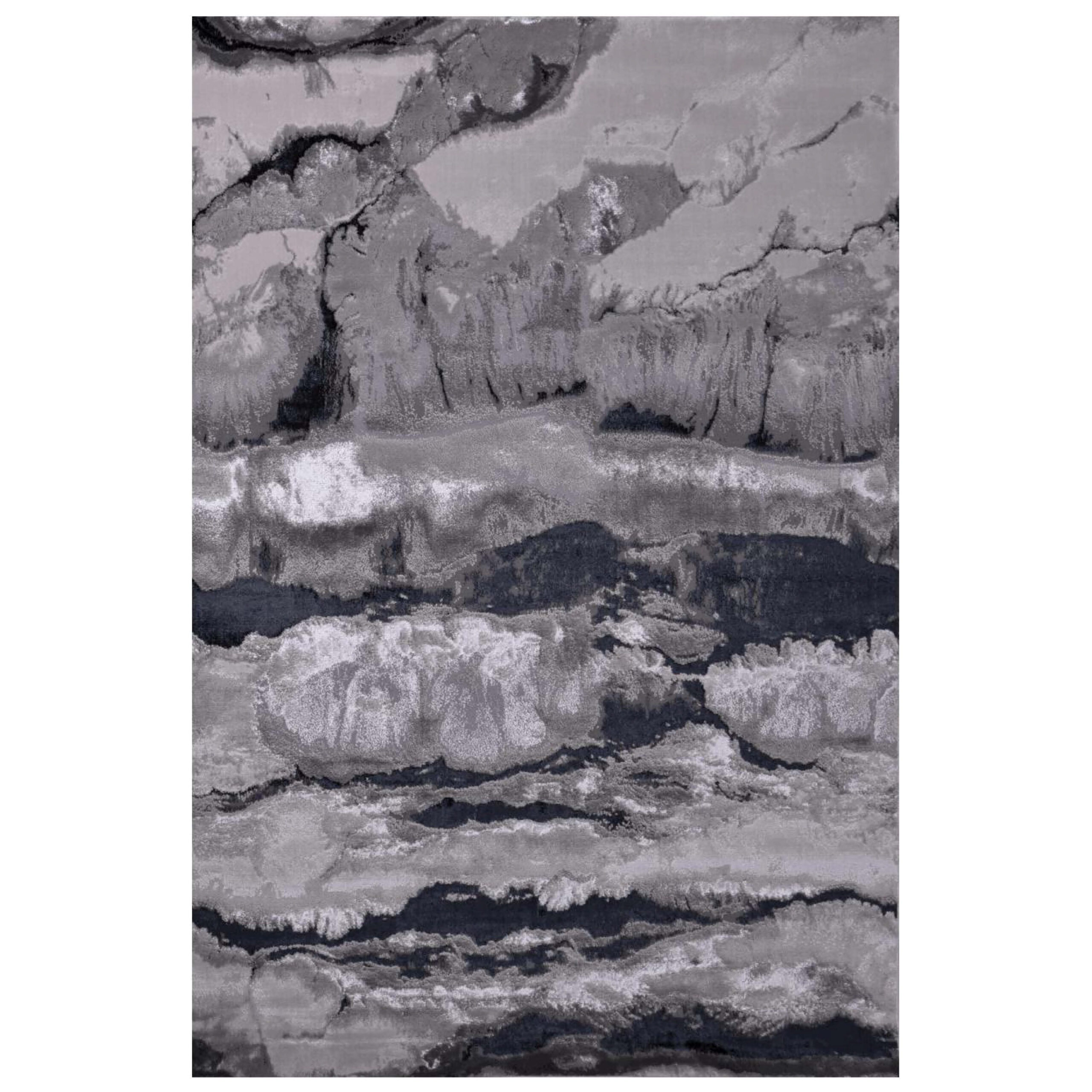 A rug showcasing a figurative design of mountains and rivers, blending natural elements with artistic expression to create a dynamic and serene atmosphere.