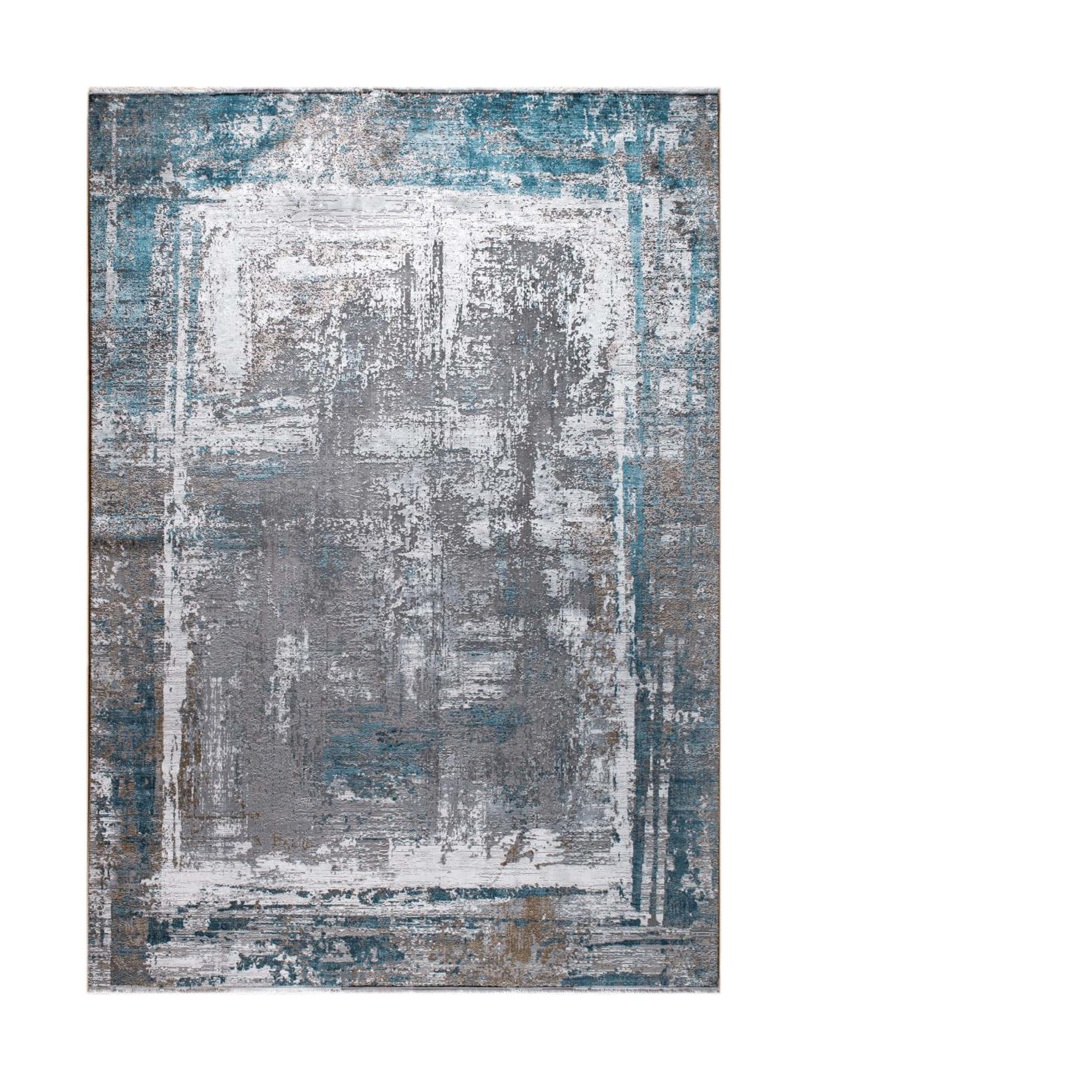 A rustic-style rug in shades of blue and gray, combining earthy textures with a cool color palette to bring a touch of rugged elegance and timeless appeal to your space.